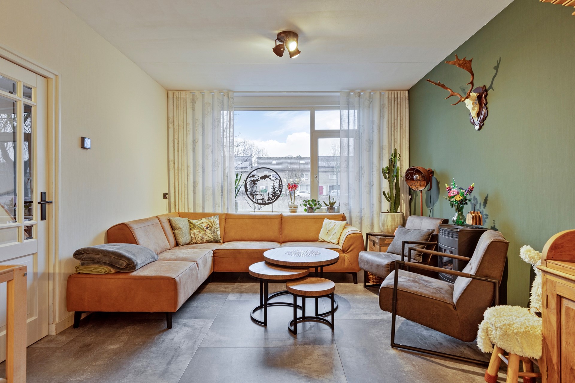 De lichte en sfeervolle woonkamer beschikt over een comfortabele zithoek en een gezellige eethoek. De open verbinding met de keuken zorgt voor een fijne ruimtelijke beleving. De keuken is voorzien van een fraaie, moderne keukenopstelling met alle wenselijke inbouwapparatuur, waaronder een kookplaat, afzuigkap, combioven, vaatwasser en koelkast.