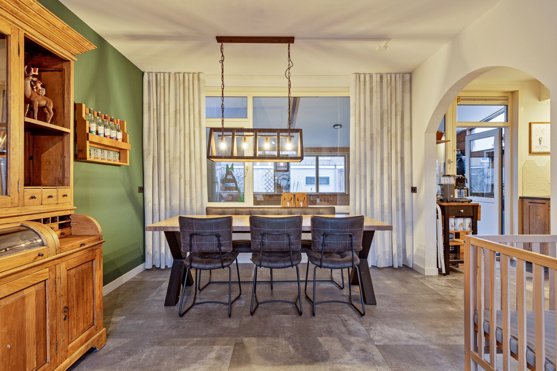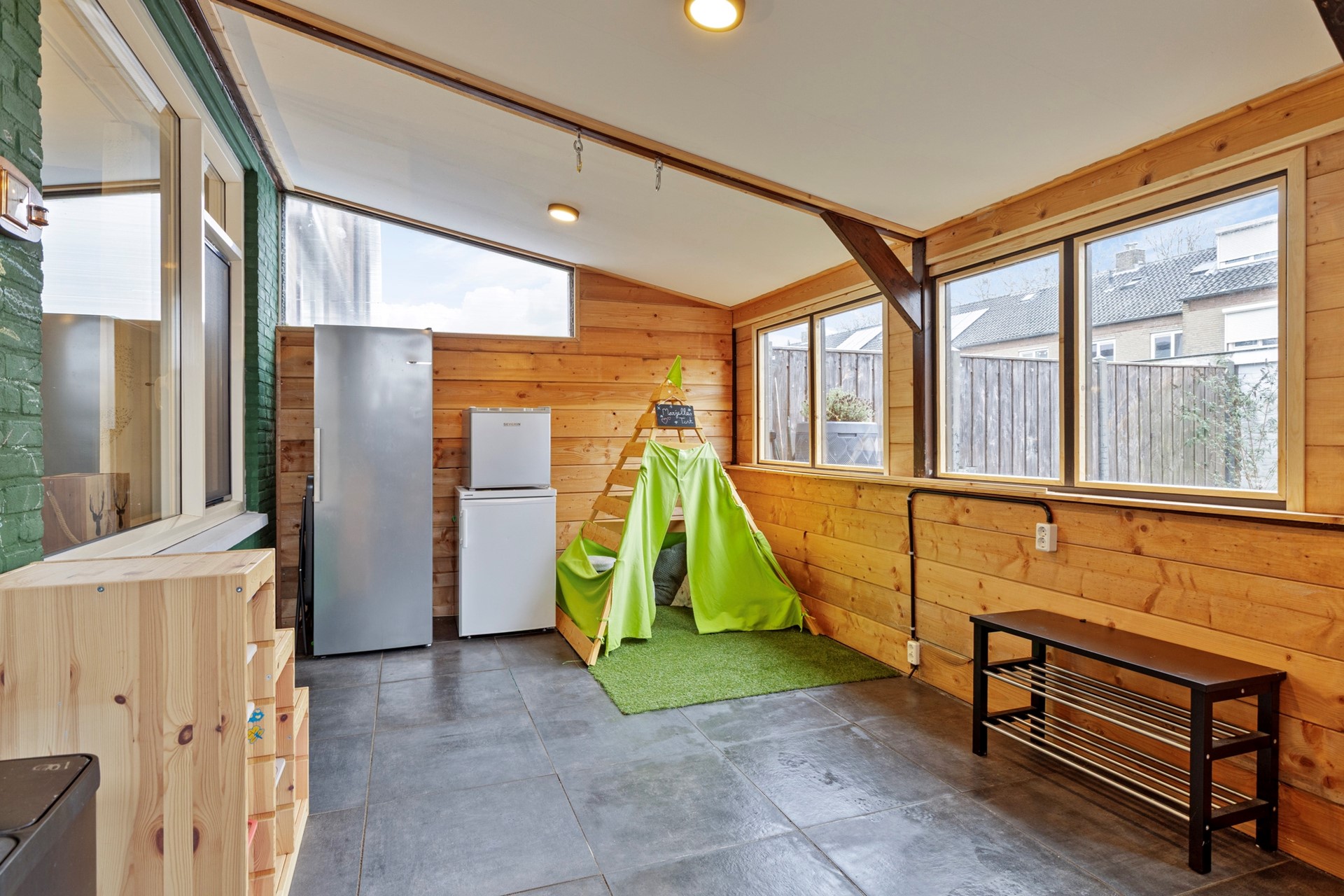 Aan de achterzijde is een aanbouw gerealiseerd met een praktische en ruime serre; een heerlijke plek om het hele jaar door te genieten. De serre staat in directe verbinding met de tuin.