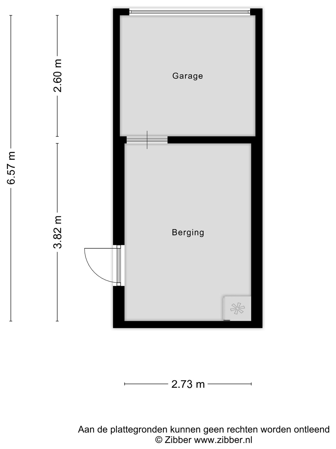 De vrijstaande garage met inpandige berging biedt extra opslagruimte en is ideaal voor het stallen van fietsen of het opbergen van gereedschap. De totale oppervlakte bedraagt ca. 18,4 m2.