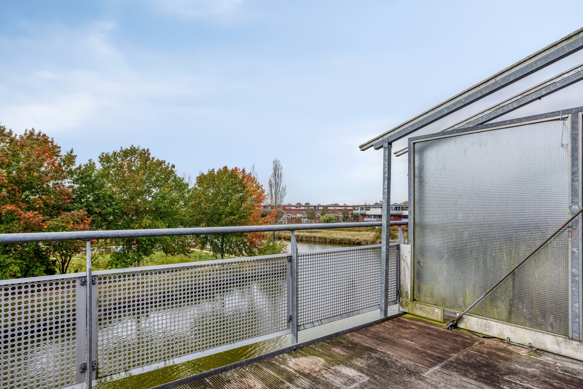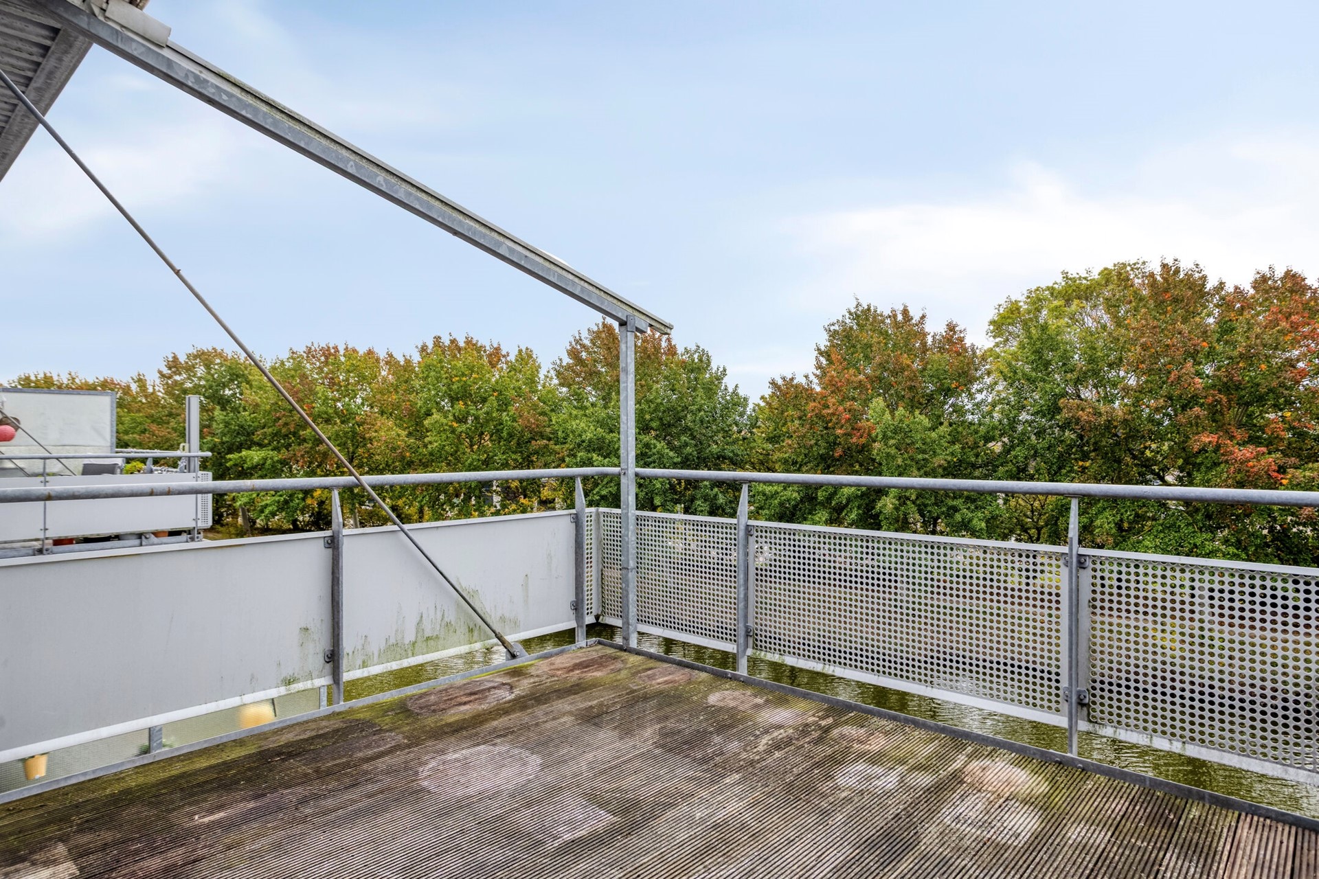 Vanuit de woonkamer bereikt u het ruime balkon met vlonderterras en vrij uitzicht over het water. Dankzij de ligging op het westen kunt u hier optimaal genieten van de middag- en avondzon. Het balkon heeft een oppervlakte van ca. 12,4 m².