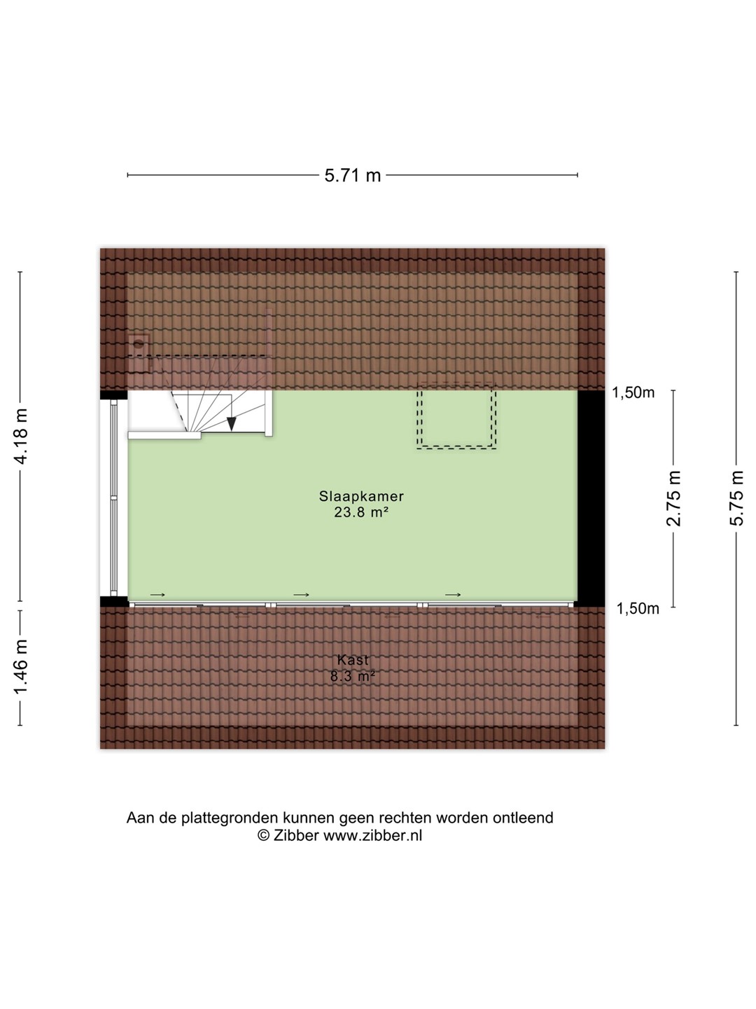 De tweede verdieping is bereikbaar via een vaste trap en bestaat uit een open ruimte van circa 23,8 m². Deze verdieping met vaste bergruimte is uitstekend geschikt als extra slaapkamer, werk- of hobbyruimte.