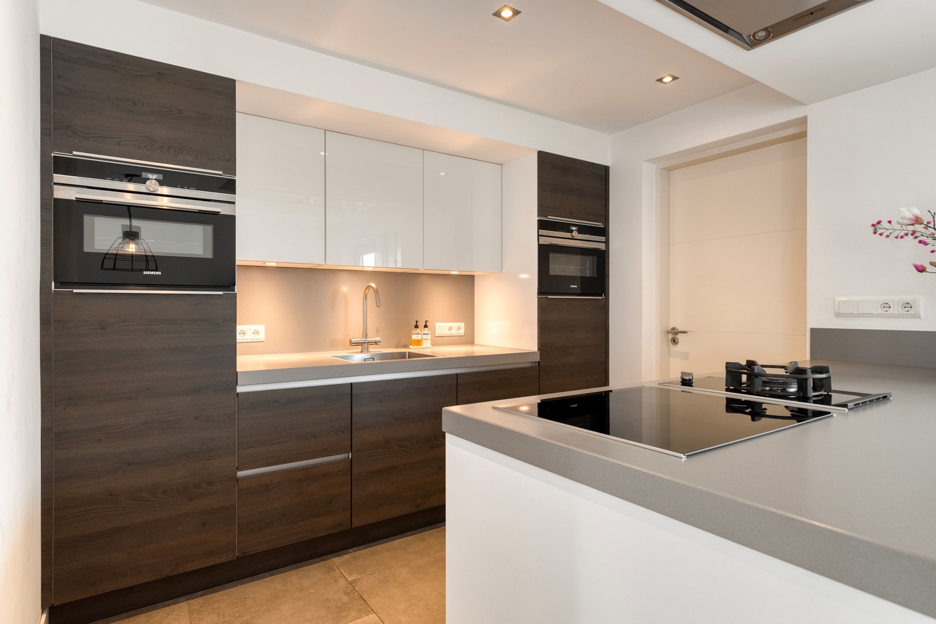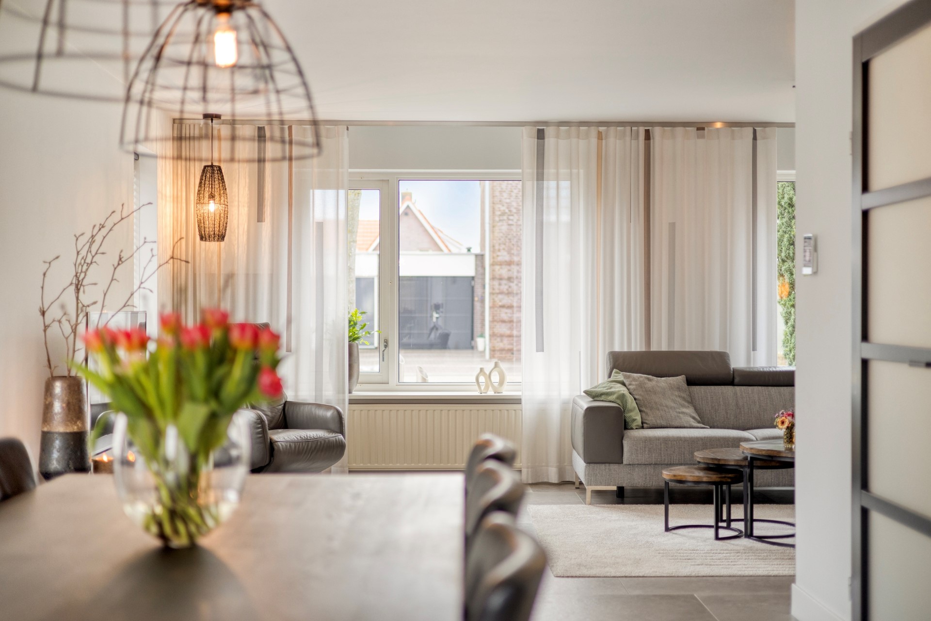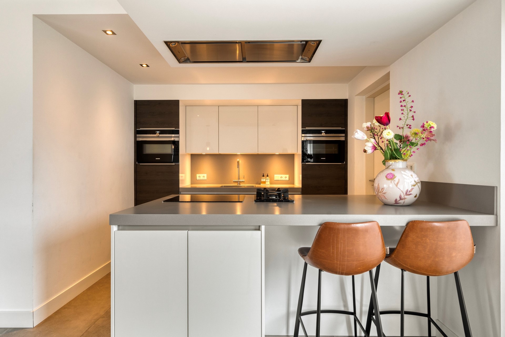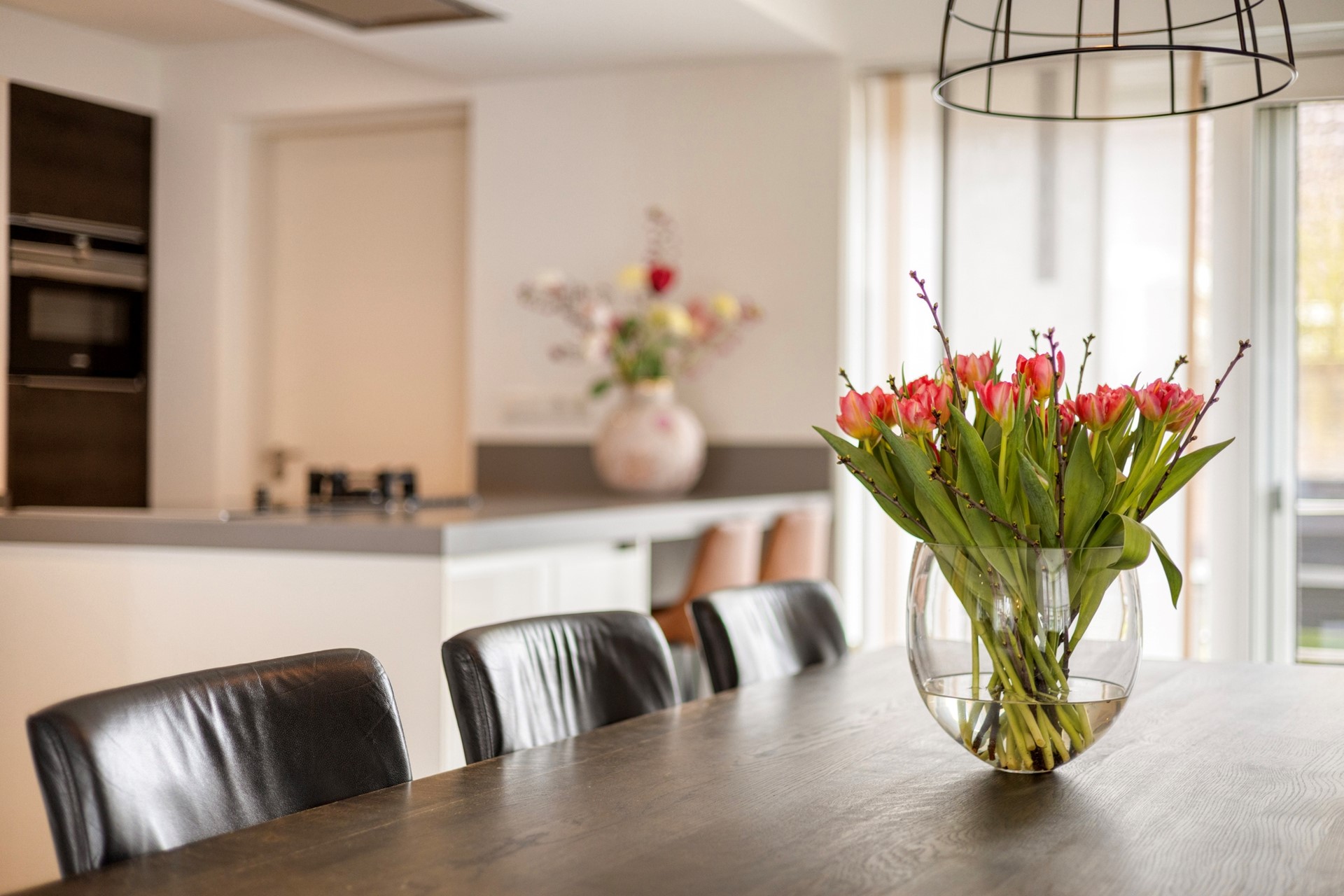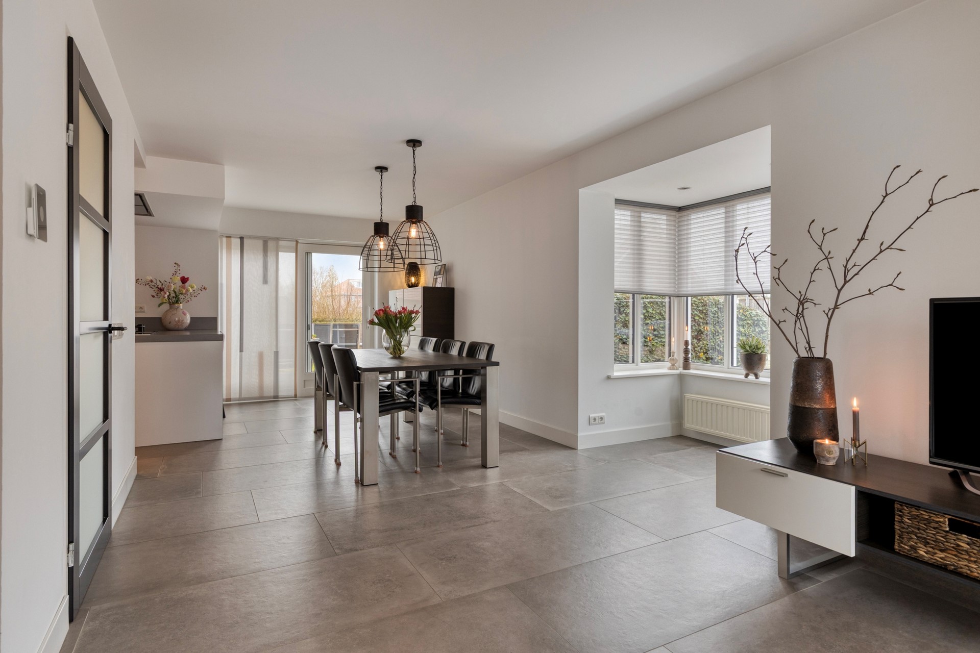 U betreedt de woning via de hal met meterkast, toilet en trapopgang. Vanuit de hal komt u in de royale woonruimte met open woonkeuken. De woonkamer is heerlijk licht dankzij de erker en de grote raampartijen. De zithoek is gesitueerd aan de voorzijde van de woning en biedt een leuk uitzicht op de straat. De eethoek bevindt zich aan de achterzijde, naast de woonkeuken. De schuifpui zorgt voor een fijne verbinding met de tuin. De woonkamer en keuken hebben samen een oppervlakte van circa 50 m², zijn keurig afgewerkt en voorzien van fraaie vloertegels met vloerverwarming. De moderne keuken (2019) is uitgerust met een kookeiland en alle gewenste inbouwapparatuur en vormt het hart van de woning. De apparatuur bestaat onder andere uit een inductiekookplaat, wokbrander, afzuigkap, vaatwasser, koelkast, oven, combimagnetron en Quooker.