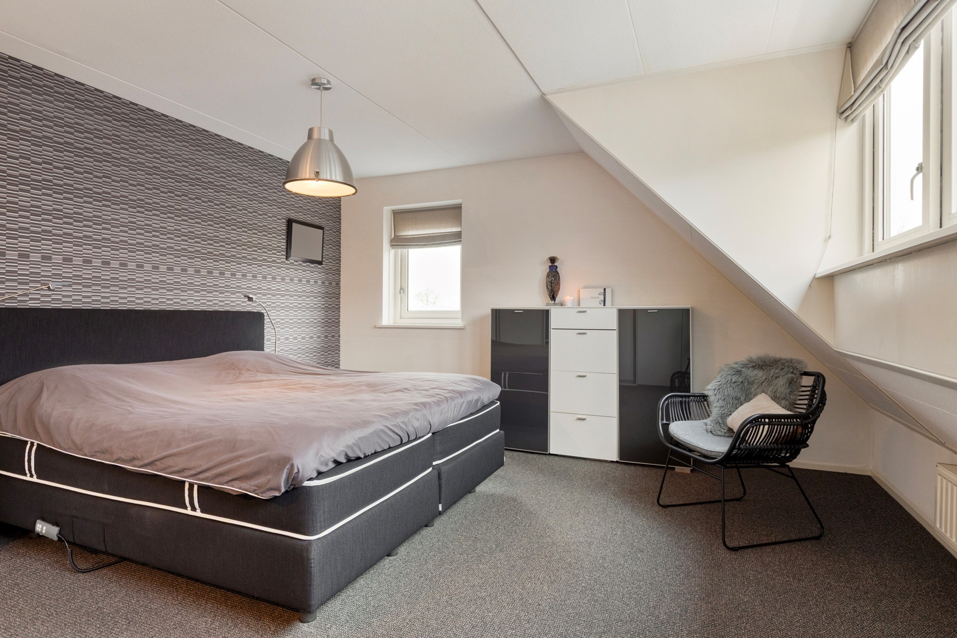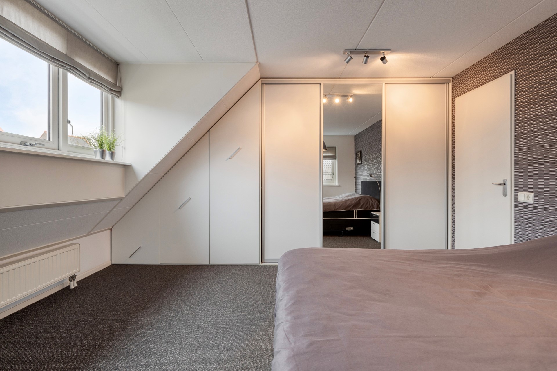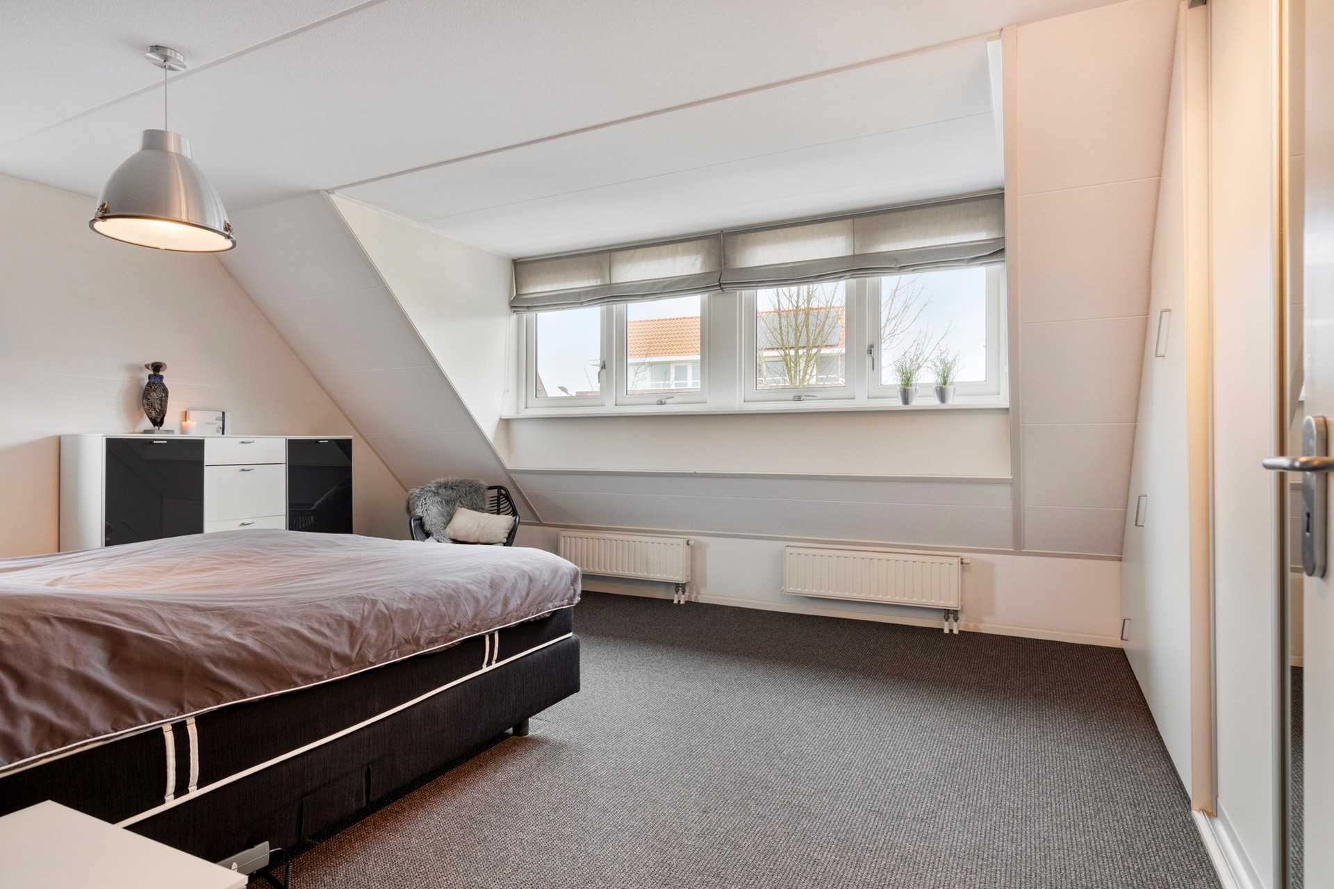 De masterbedroom ligt aan de voorzijde van de woning, heeft een oppervlakte van maar liefst circa 25,6 m² en beschikt over vaste kastruimte. De overige slaapkamers hebben een oppervlakte van circa 17 m² en circa 14,4 m². De nette badkamer heeft een oppervlakte van circa 7,3 m² en is voorzien van een douchehoek, toilet, wastafel en vaste bergruimte.