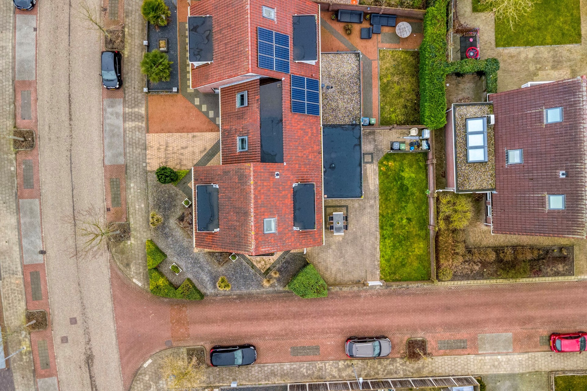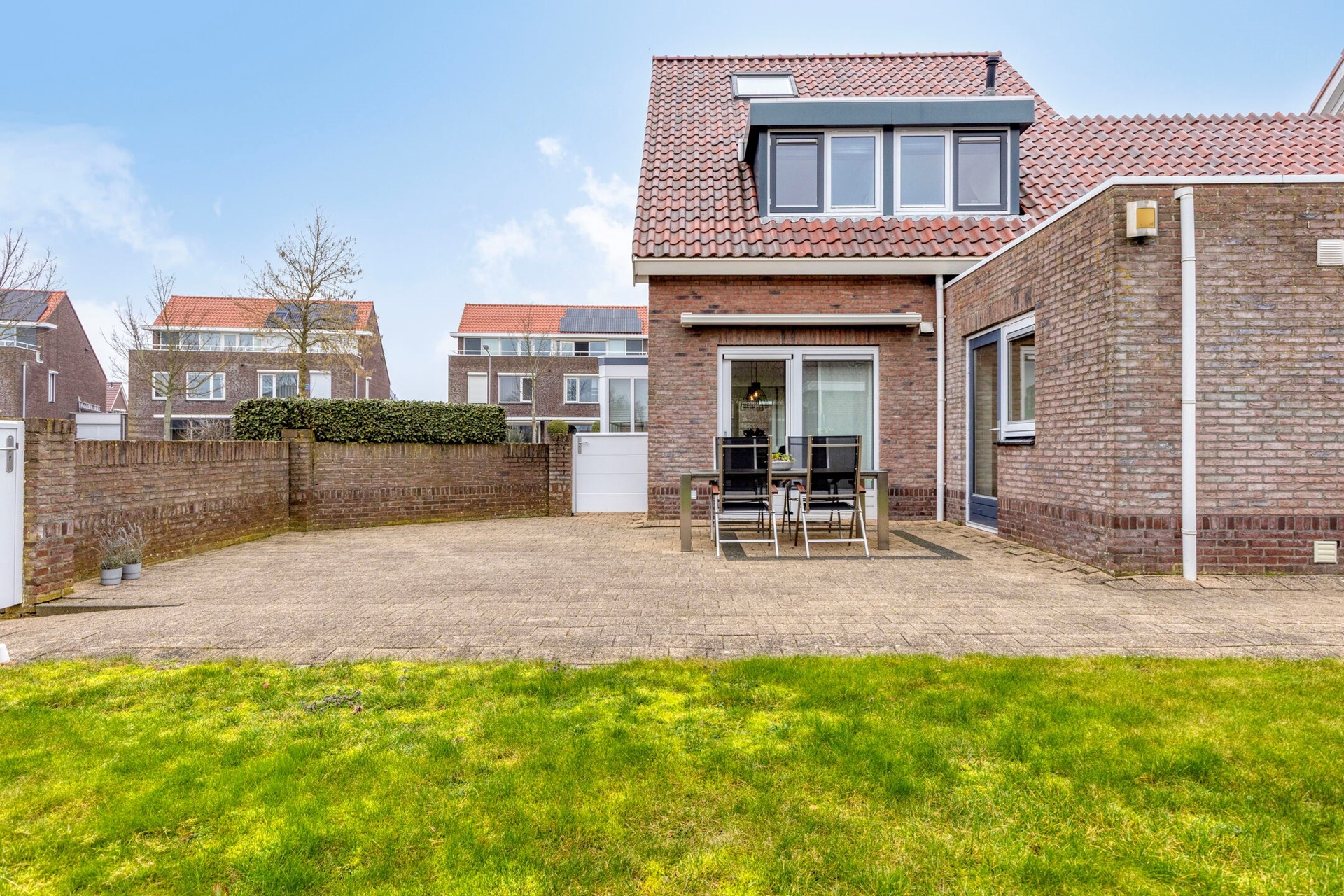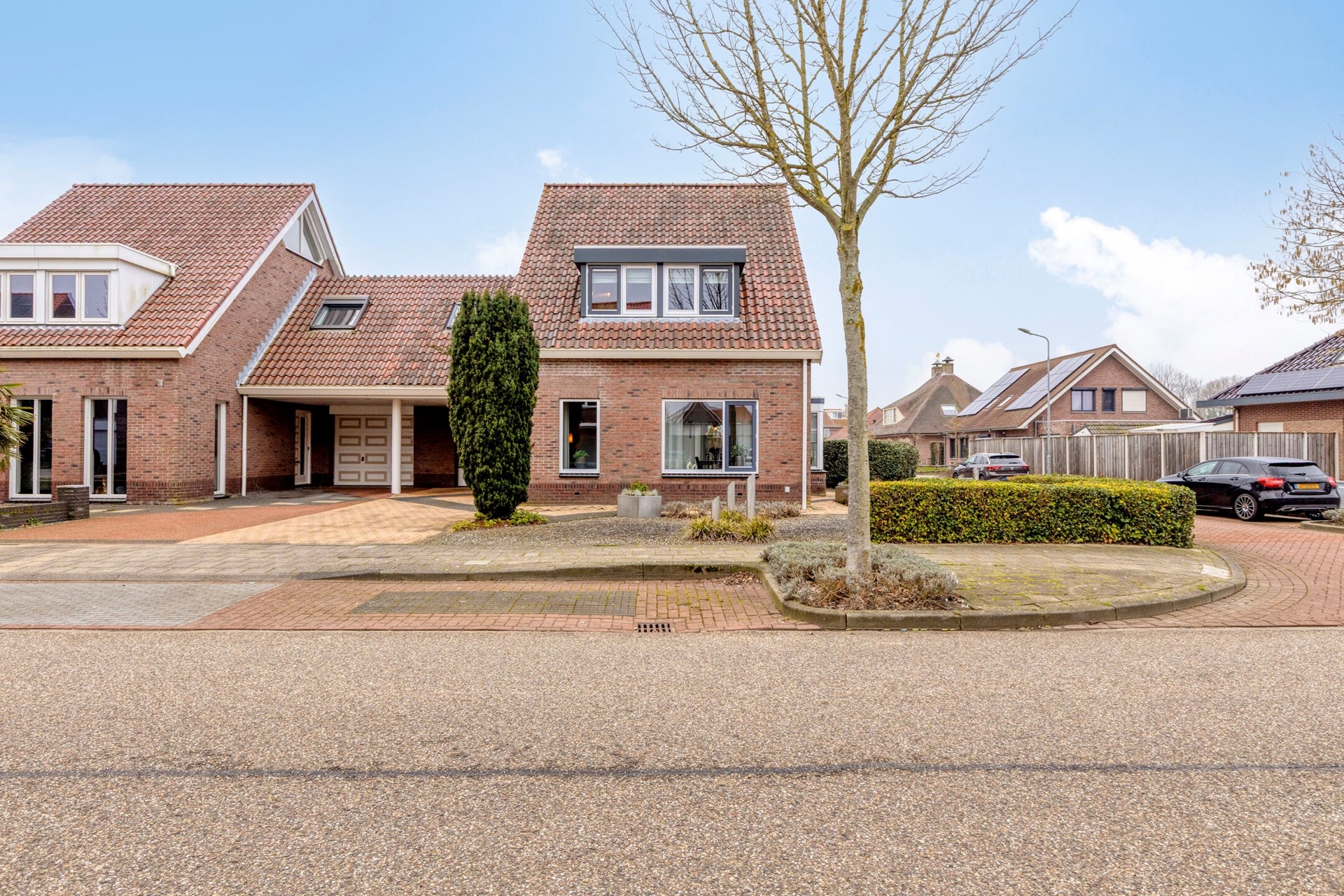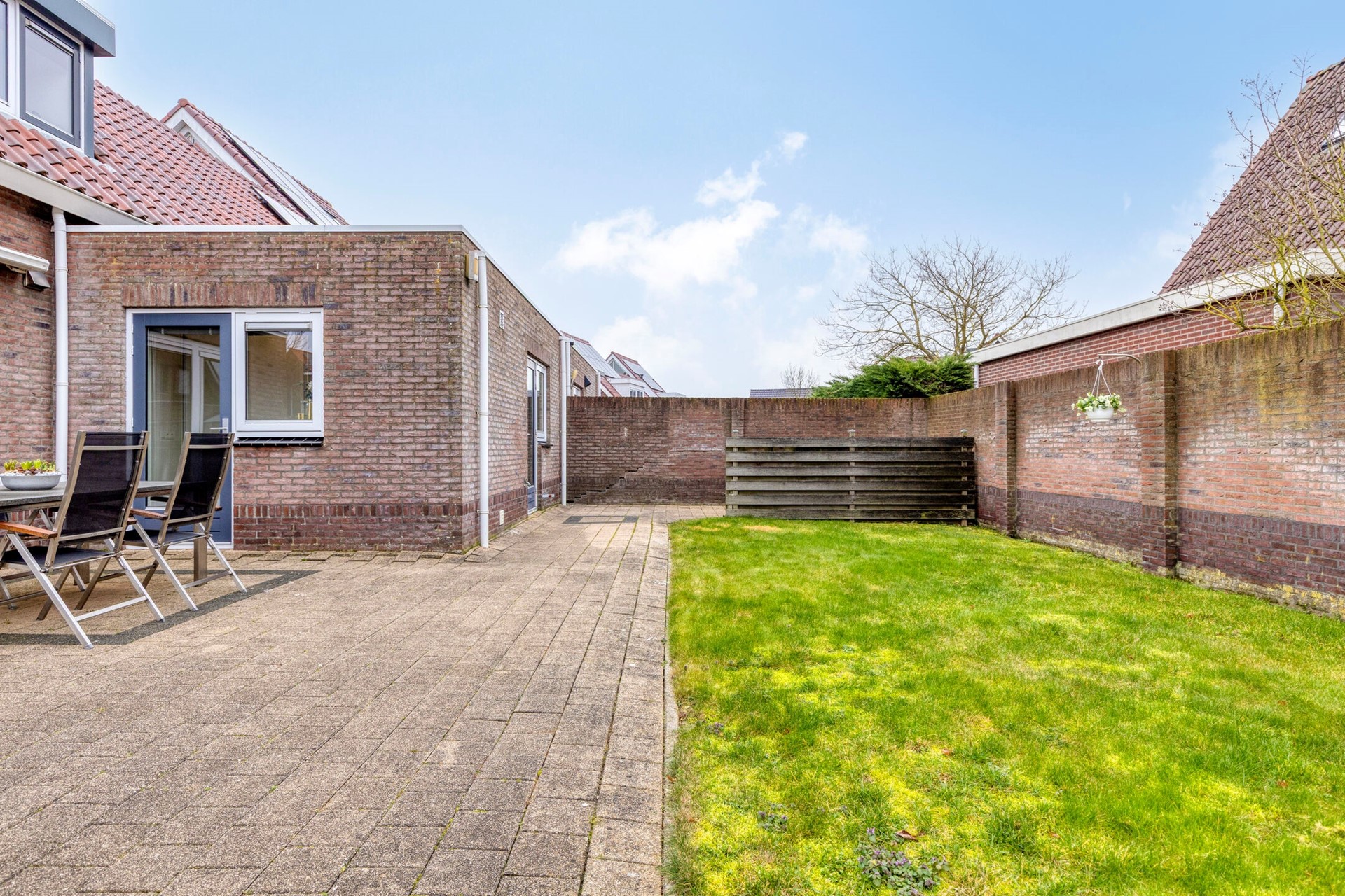 De ruime achtertuin is open aangelegd met bestrating en gras en is gunstig gelegen op het zuidwesten, waardoor u hier optimaal van de zon kunt genieten. Aan de gevel bevindt zich een zonnescherm. De tuin beschikt over een vrije achterom. Aan de voorzijde ligt een diepe oprit met parkeergelegenheid voor meerdere auto’s.