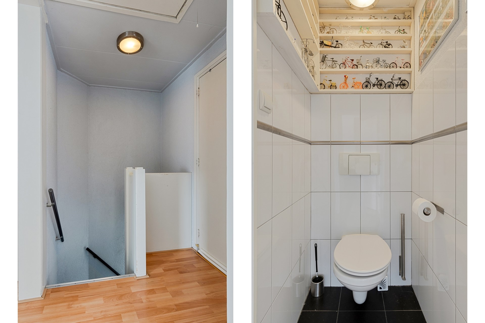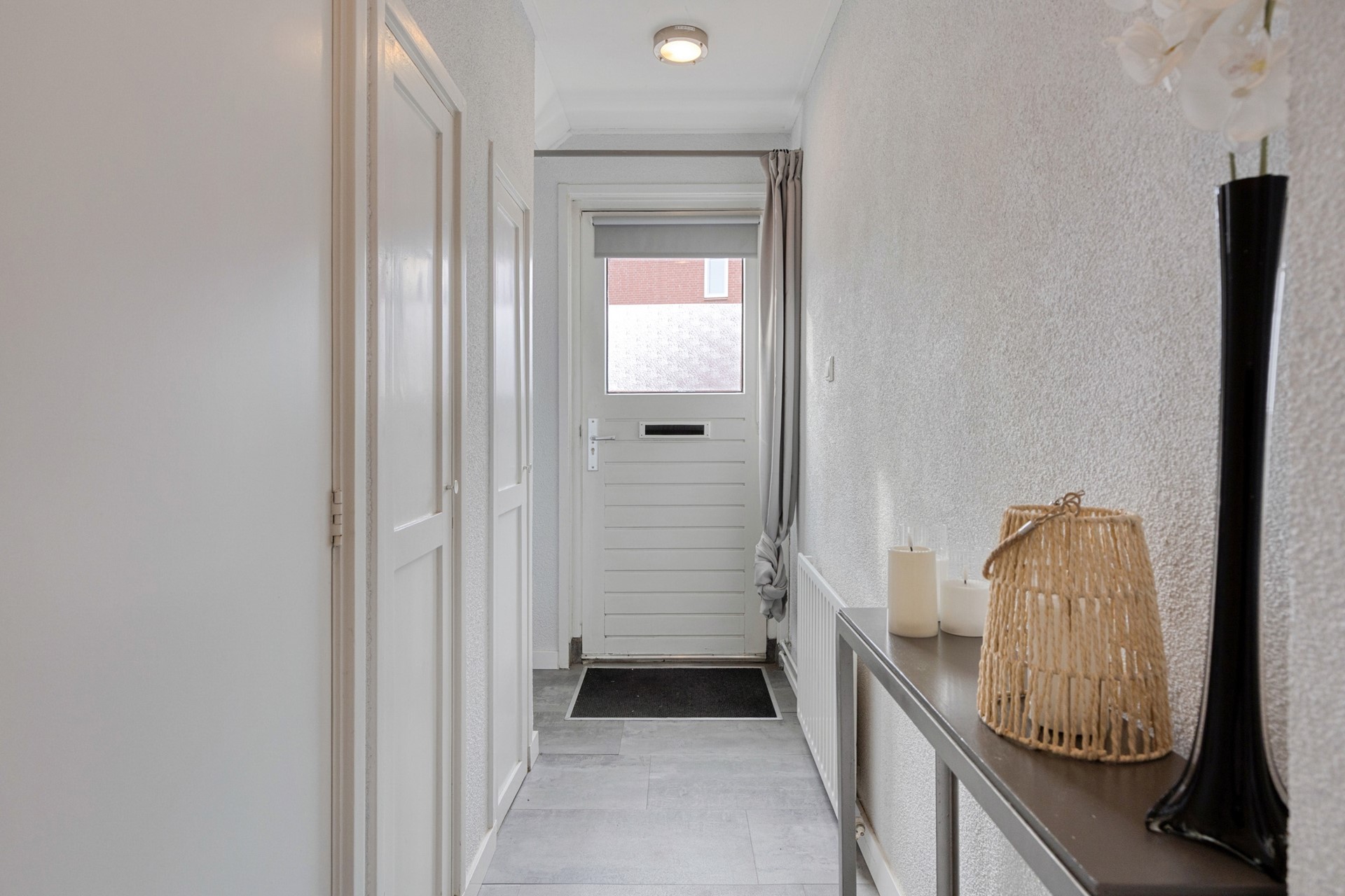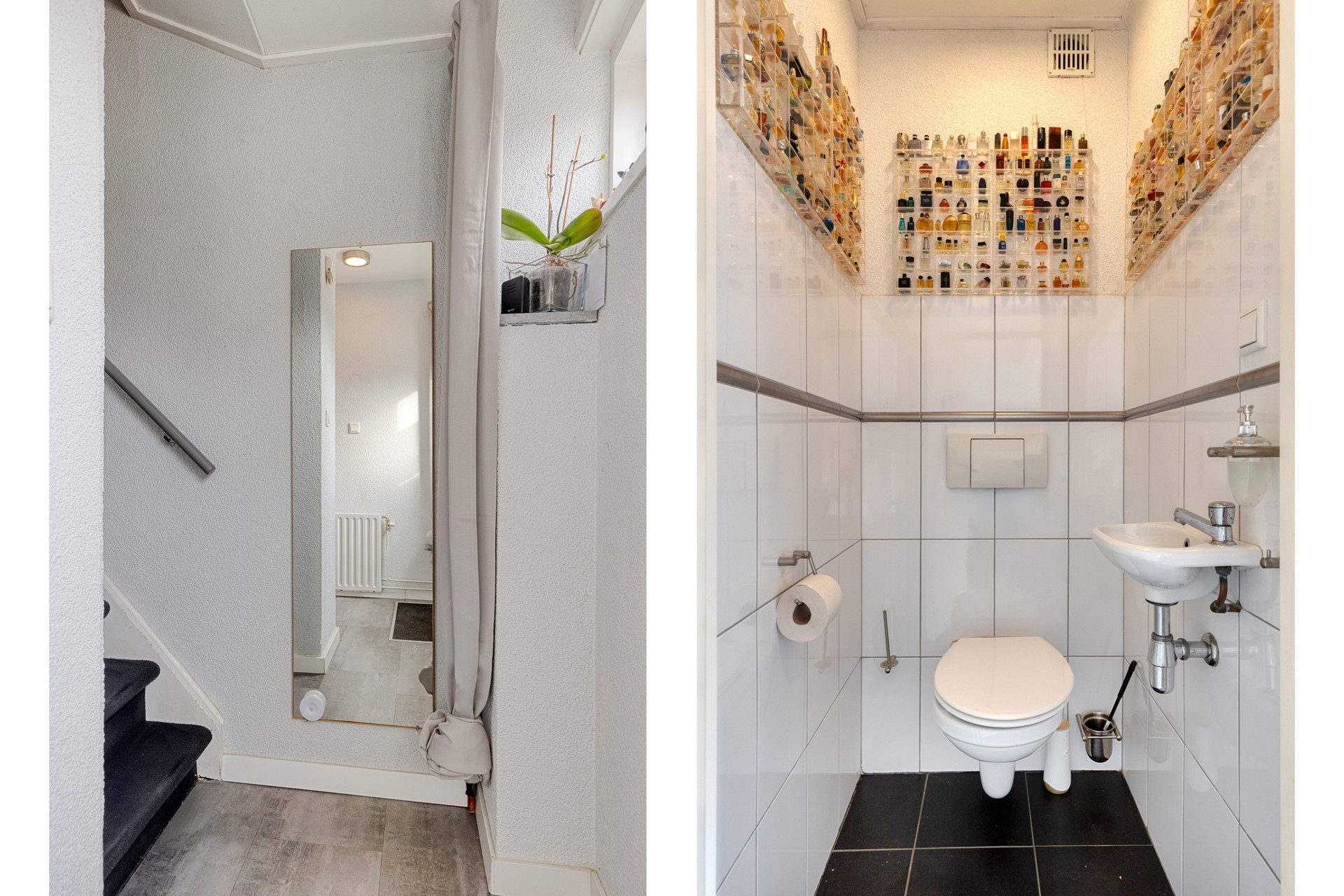 Via de entree komt u in de ruime hal met meterkast, toilet, trapkast en trapopgang. Het toilet is uitgevoerd met een hangtoilet en fonteintje.