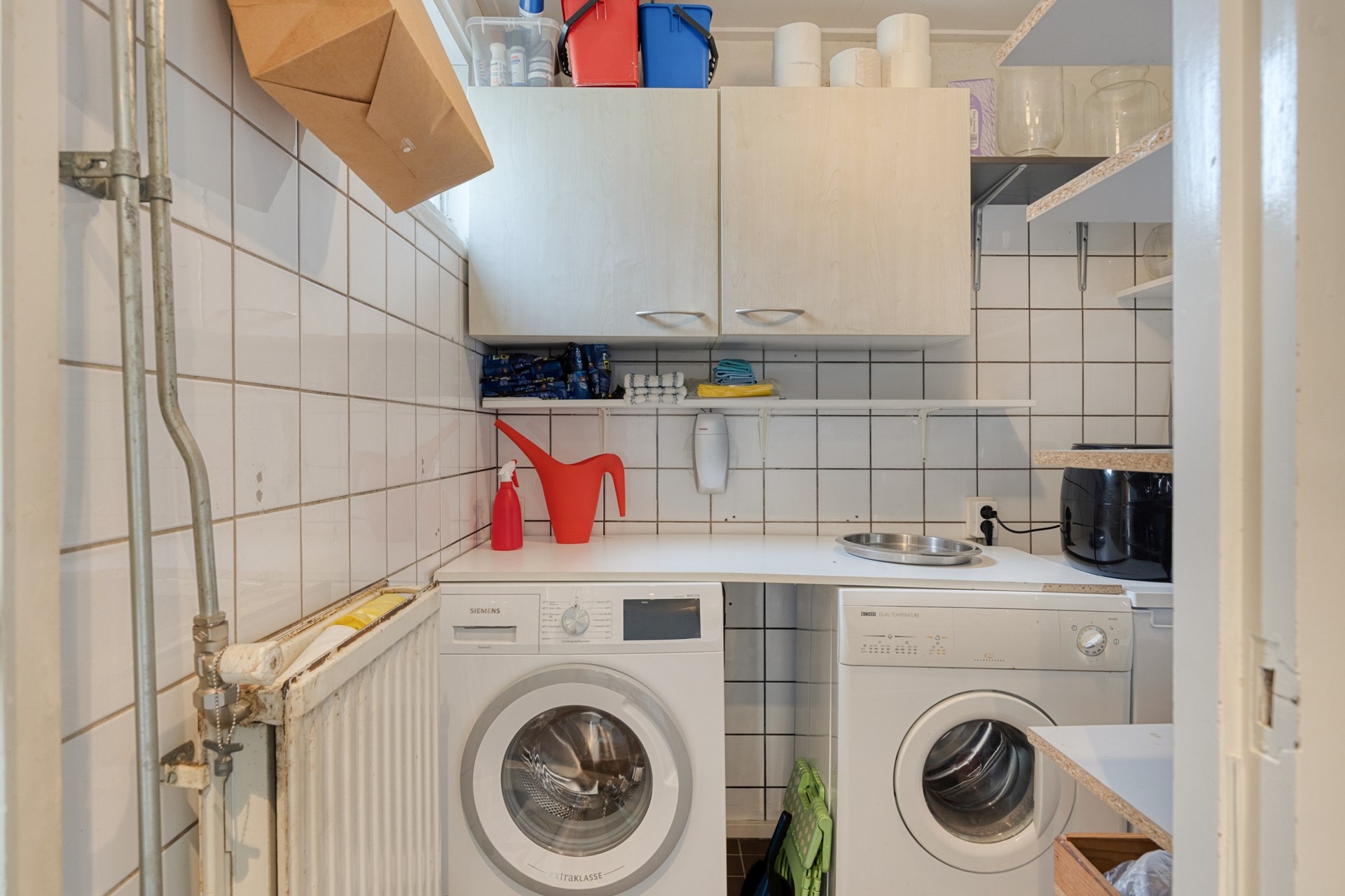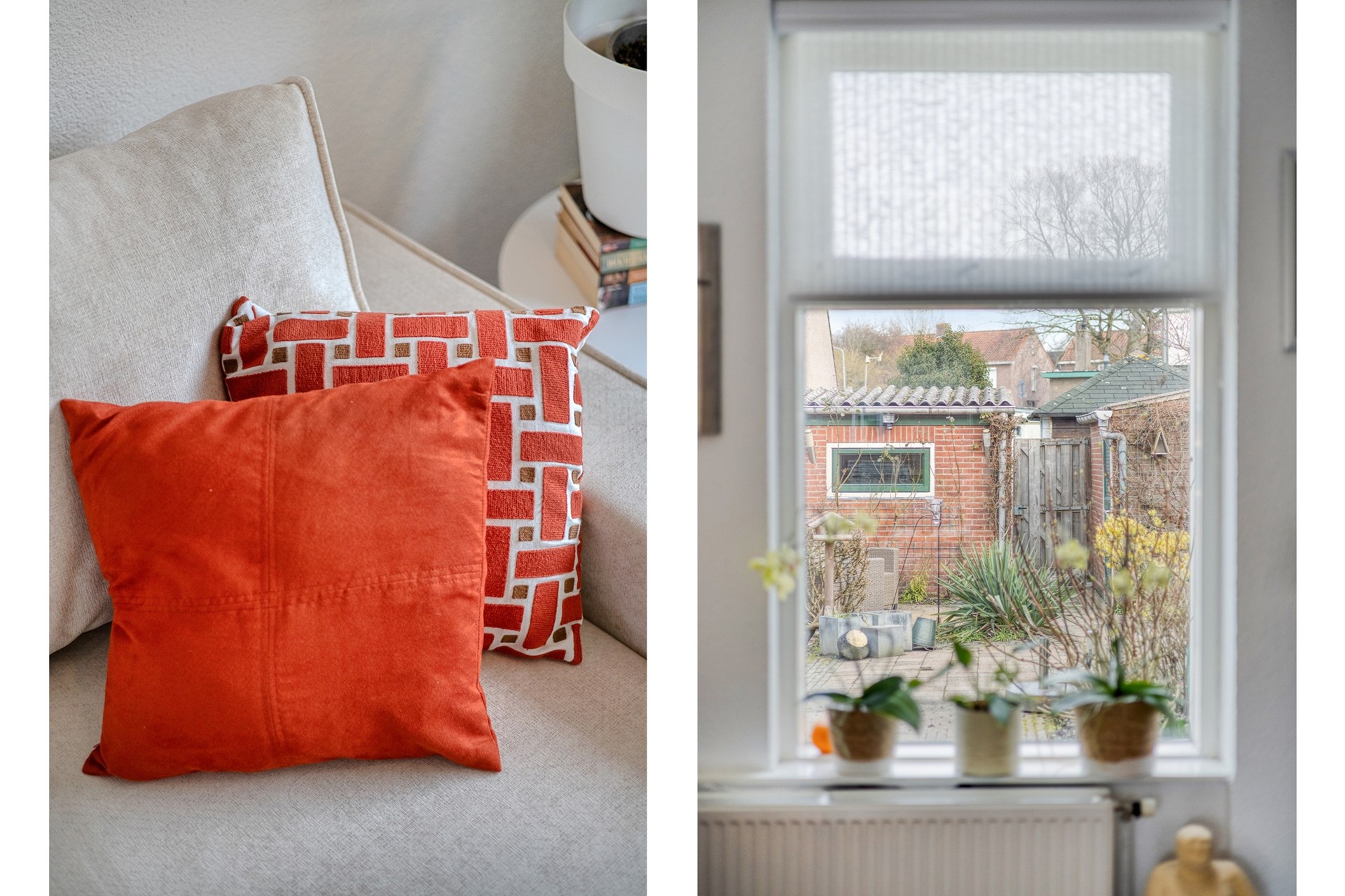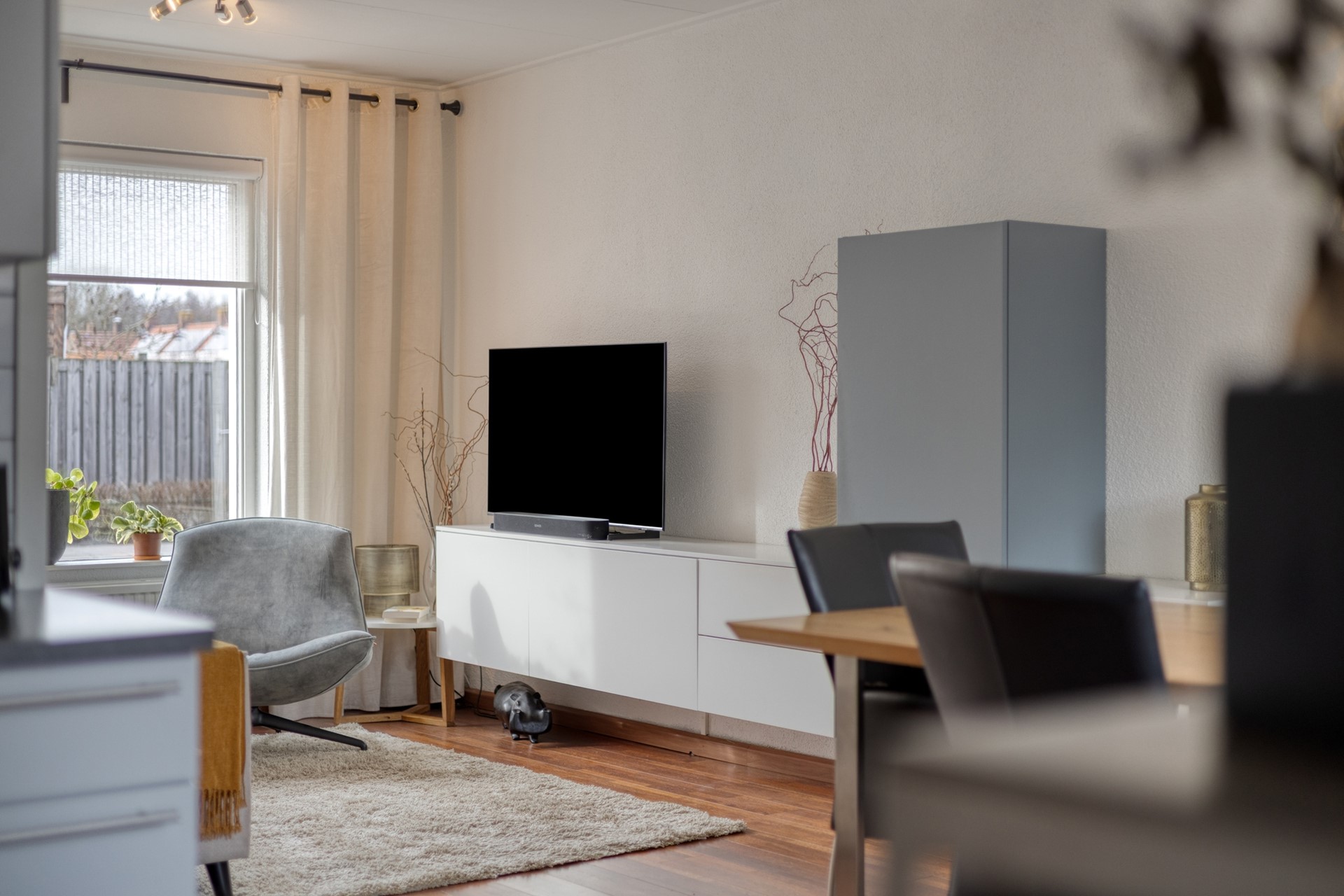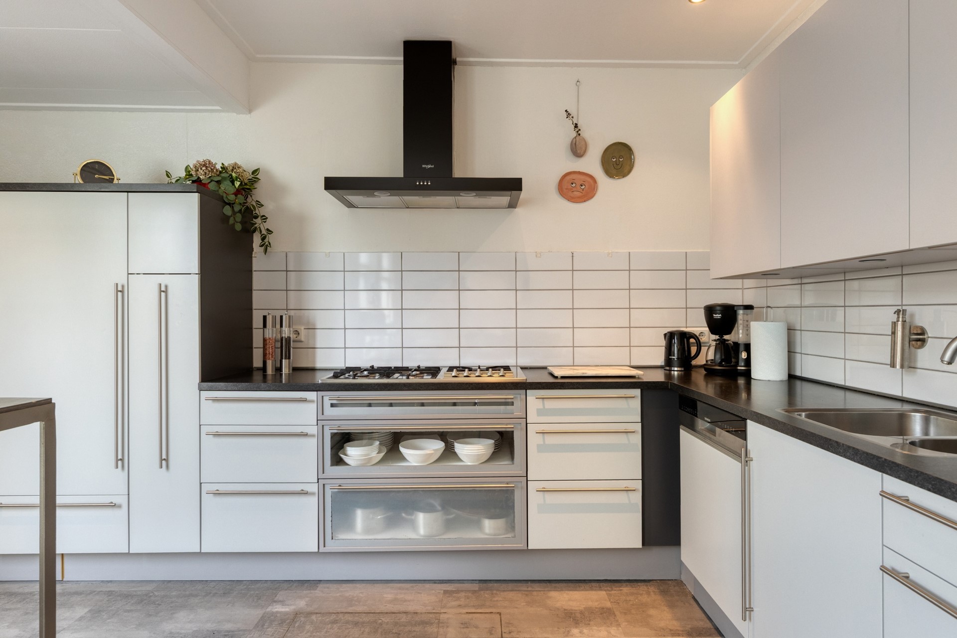 De lichte en sfeervolle woonkamer heeft een oppervlakte van ca. 22 m² en biedt een prettige leefruimte met een open doorgang naar de keuken. De zithoek bevindt zich aan de voorzijde, terwijl de eethoek grenst aan de open keuken. De keuken (ca. 9 m²) is voorzien van een nette keukenopstelling en is deels vernieuwd in 2025. De inbouwapparatuur bestaat onder andere uit een gaskookplaat, afzuigkap, oven, magnetron, vaatwasser en koelkast. Vanuit de keuken heeft u direct toegang tot de tuin. Aangrenzend bevindt zich de praktische bijkeuken met aansluitingen voor wasmachine en droger, ideaal voor extra opslag en huishoudelijk gemak.