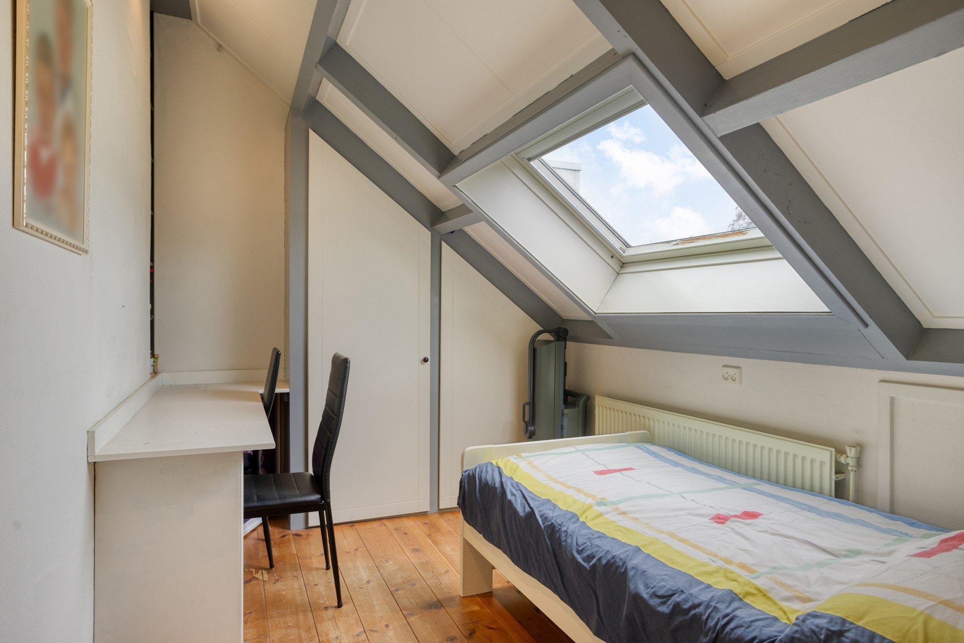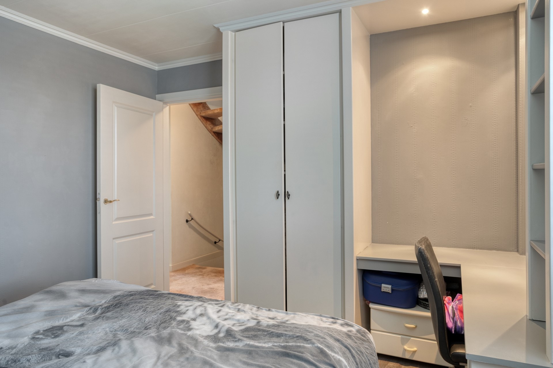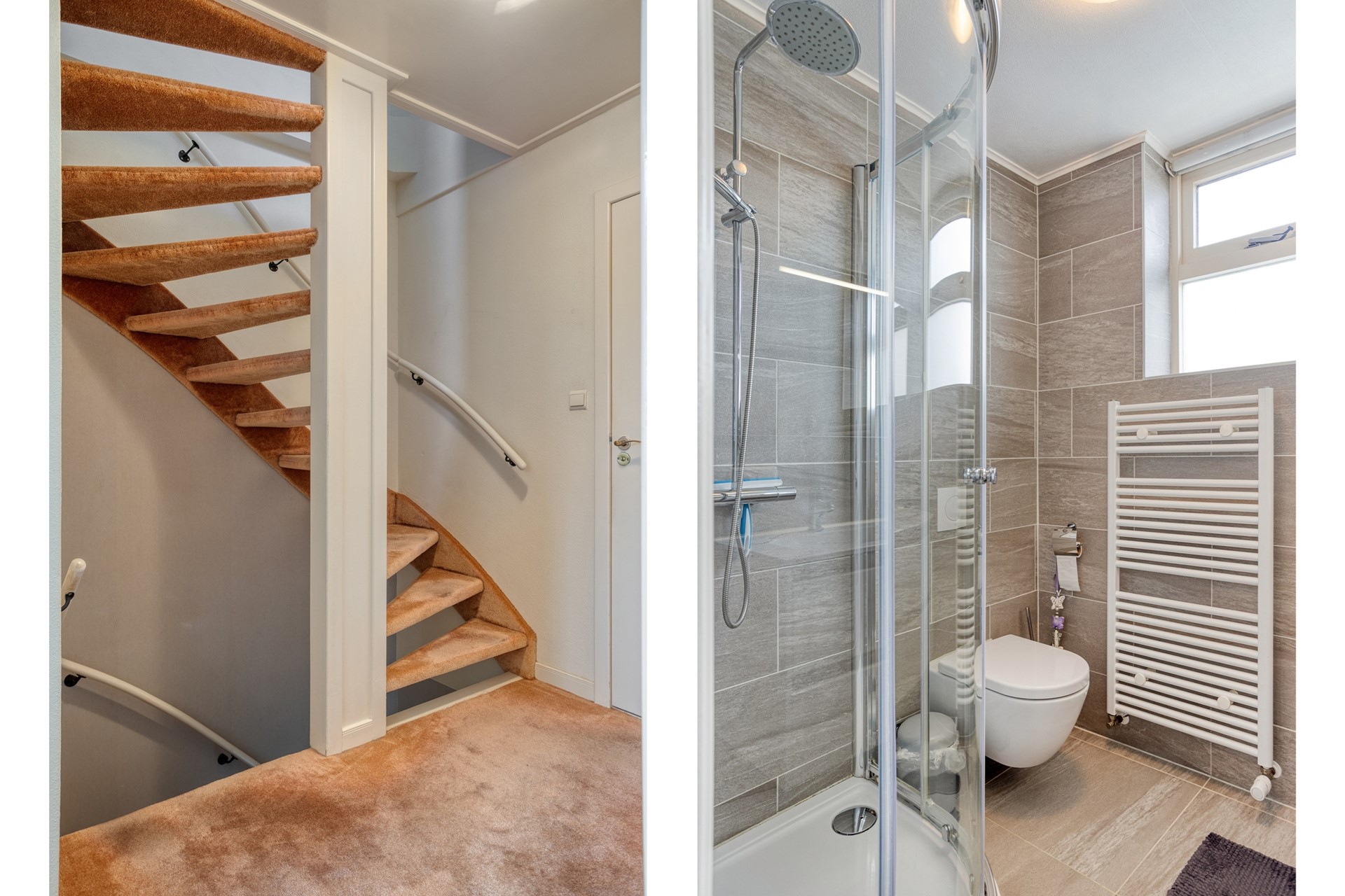 Via een vaste trap bereik je de tweede verdieping. Hier bevinden zich een overloop met cv-opstelling en twee slaapkamers. De slaapkamers hebben een oppervlakte van ca. 7,8 m2 en 8,6 m2. Deze ruimtes zijn uitstekend geschikt als slaap-, werk- of hobbykamer. Daarnaast is er vaste bergruimte aanwezig.