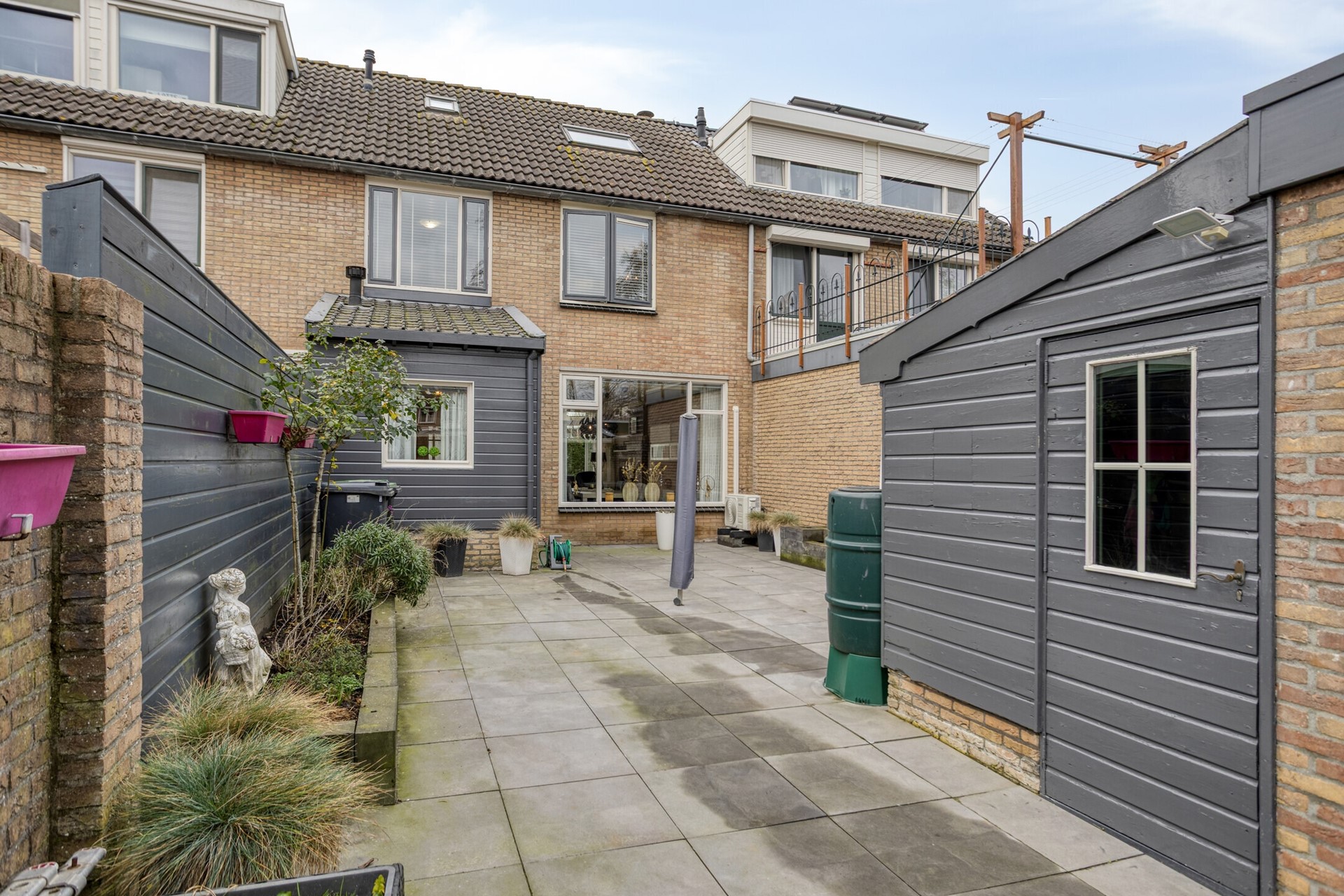 De tuin is netjes en onderhoudsarm aangelegd, waardoor je hier optimaal kunt genieten zonder veel onderhoud. De tuin ligt op het noordoosten en biedt goede bezonningsmogelijkheden. Daarnaast beschikt de woning over een stenen berging van circa 7,6 m² en een houten berging van circa 3 m², ideaal voor fietsen, gereedschap en extra opslag. Tevens is er een vrije achterom aanwezig.