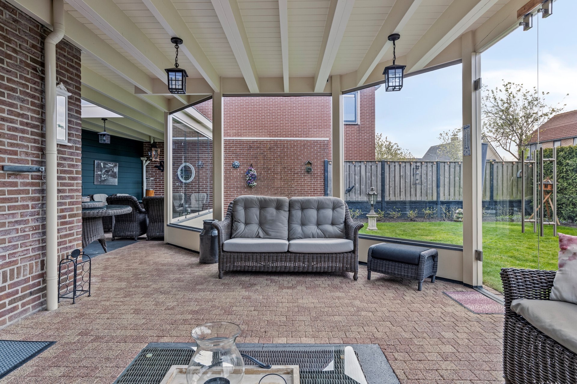 De riante en zonnige tuin rondom de woning biedt volop privacy en talloze mogelijkheden om te ontspannen of buiten te leven. Van een rustige ochtend met een kop koffie in de zon tot lange zomeravonden met vrienden – deze tuin nodigt uit tot genieten. Of je nu wilt loungen, spelen, tuinieren of de dag afsluiten in de aangrenzende serre, hier is ruimte voor elk moment.