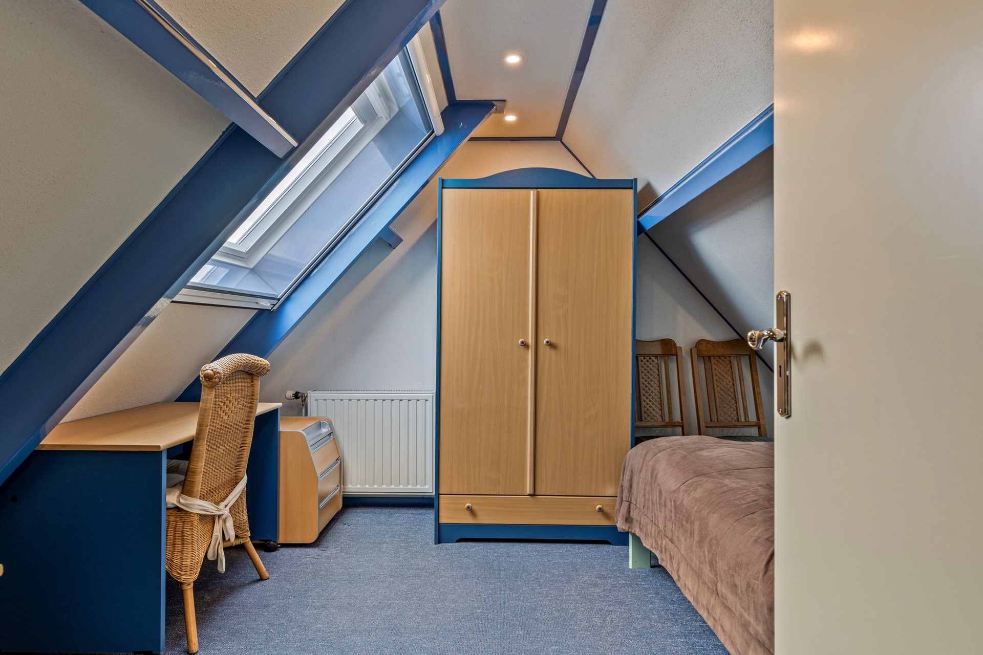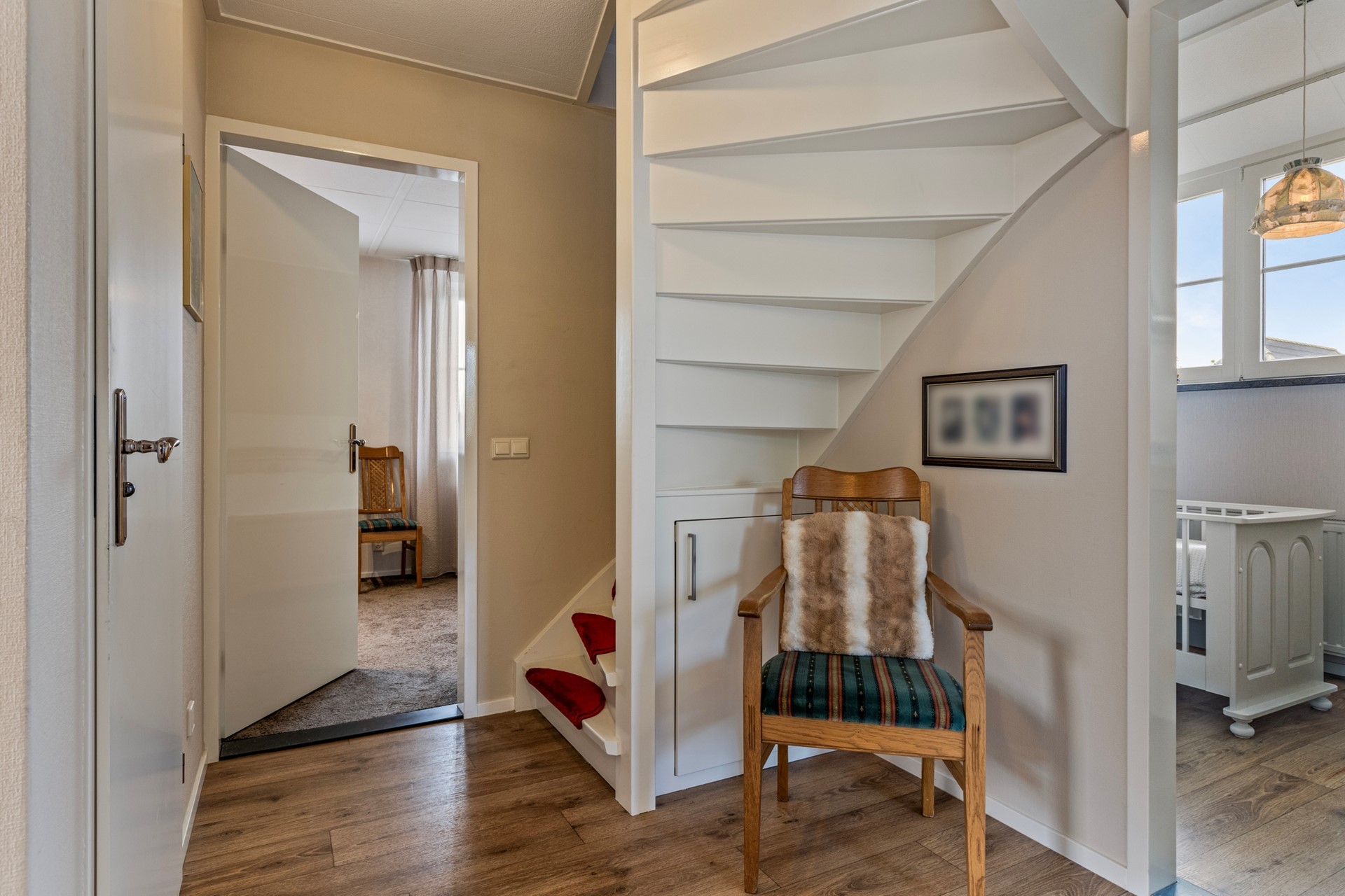 Via de vaste trap bereik je de tweede verdieping. Hier bevinden zich nog twee ruime slaapkamers en extra vaste bergruimte – ideaal als opslagruimte of hobbykamer.
