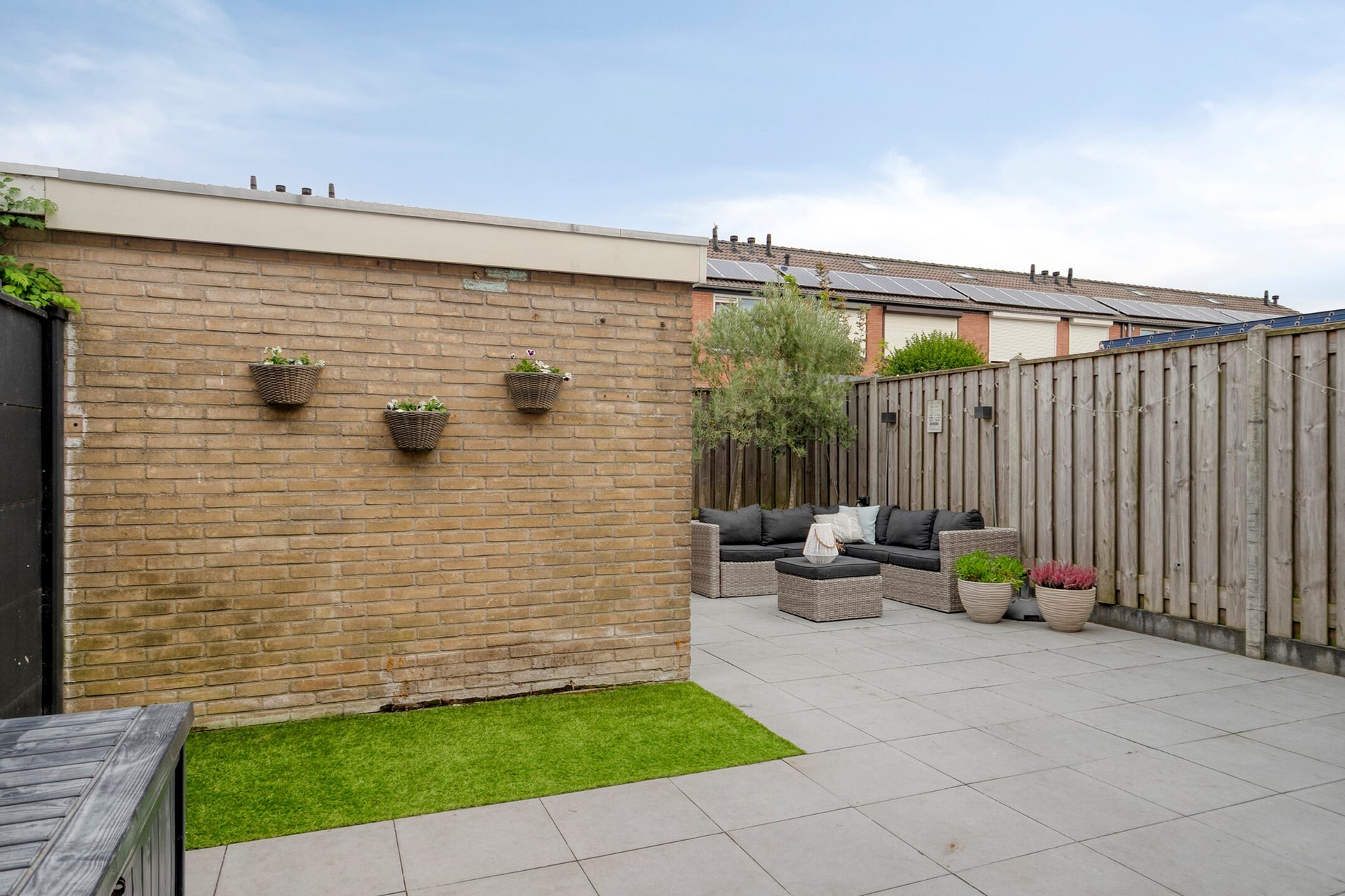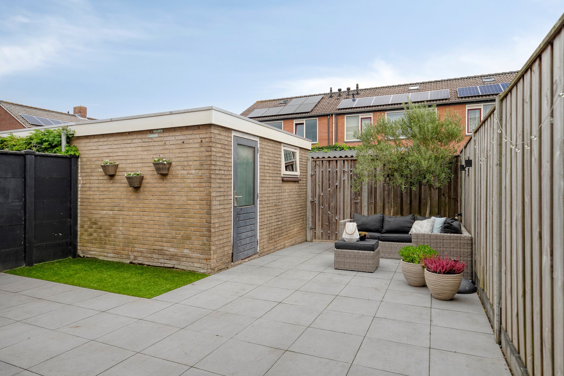 De achtertuin is verzorgd aangelegd, grotendeels bestraat en gelegen op het noordoosten. U kunt hier heerlijk genieten van de ochtend- en middagzon. Achterin de tuin staat een stenen berging (ca. 10,6 m2), ideaal voor fietsen en tuingereedschap. De tuin beschikt tevens over een vrije achterom.
