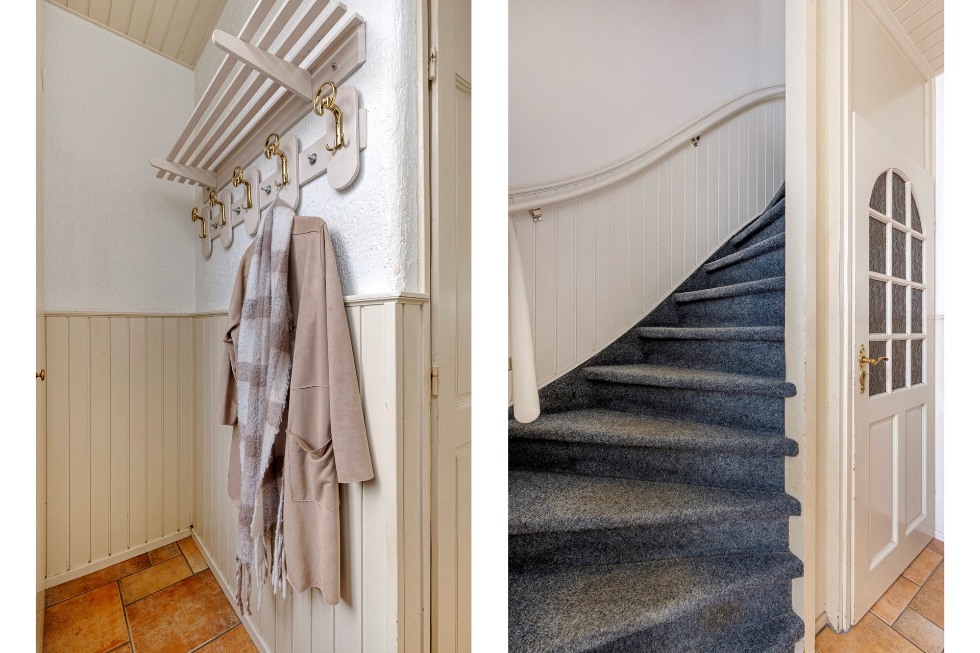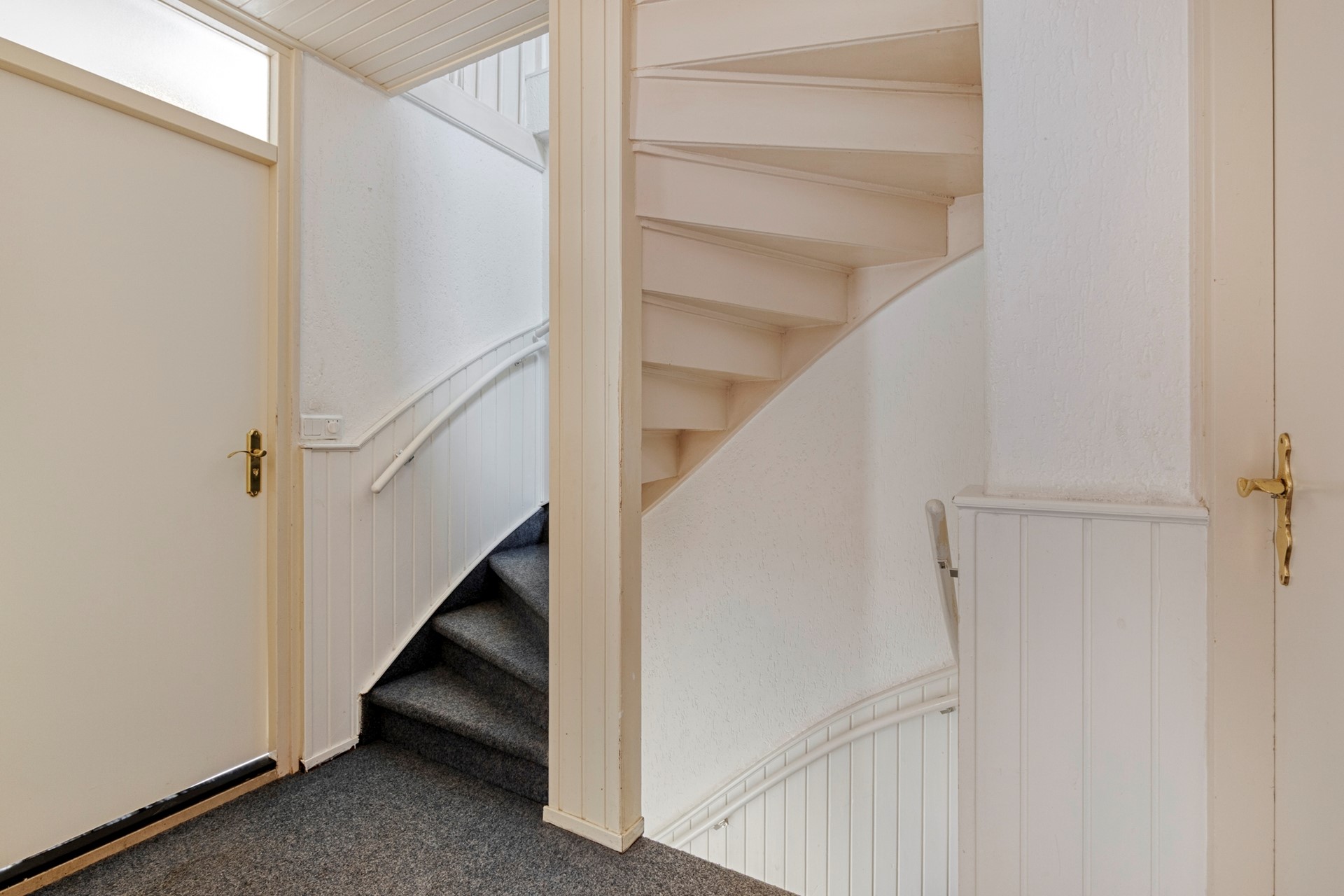 In de hal bevinden zich de meterkast, het toilet en de trapopgang naar de bovenliggende verdiepingen. Het toilet is netjes uitgevoerd met een hangtoilet.