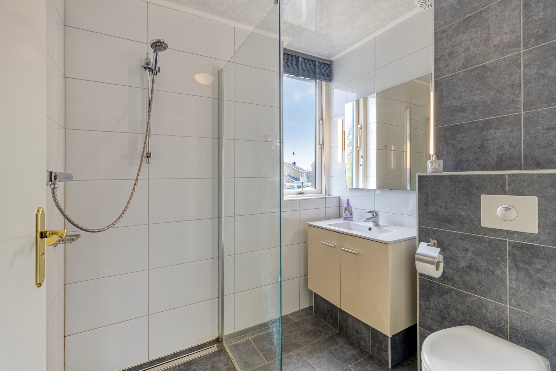 De slaapkamers hebben een gevarieerde oppervlakte van circa 7 m² tot circa 11 m². De slaapkamer aan de achterzijde beschikt over vaste kastruimte. Aan de voorzijde bevindt zich de nette badkamer, uitgerust met een inloopdouche, badkamermeubel en toilet.