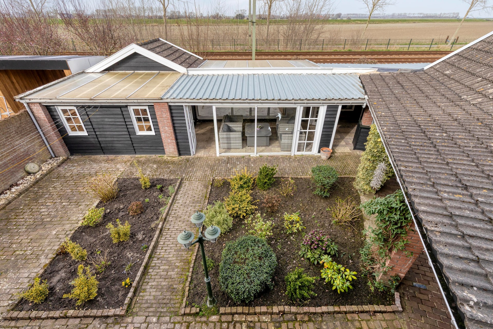 Ook aan externe ruimte geen gebrek: op het perceel bevinden zich een voormalige garage met bergzolder en meerdere bergingen.