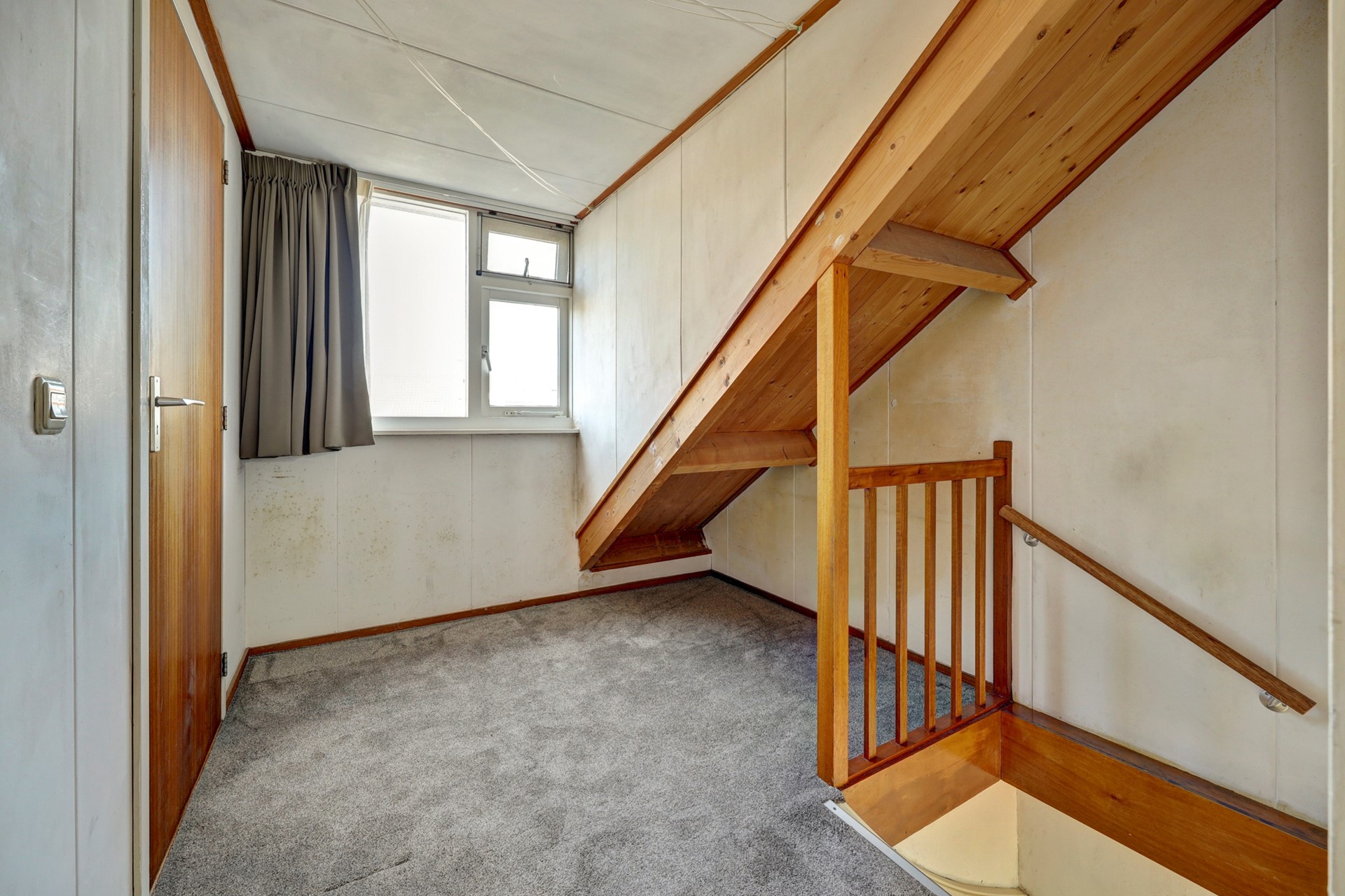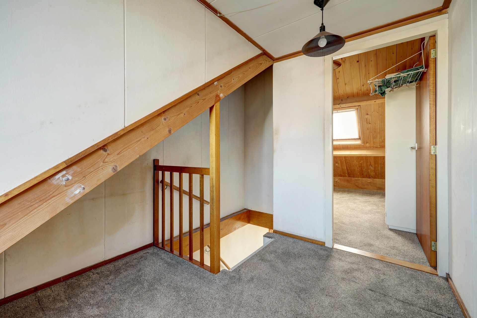 De overloop geeft toegang tot twee slaapkamers. De grootste slaapkamer heeft een oppervlakte van circa 12 m². Dankzij de dakkapel aan de achterzijde is extra ruimte en licht gecreëerd, wat zorgt voor een prettige woonbeleving op deze verdieping.