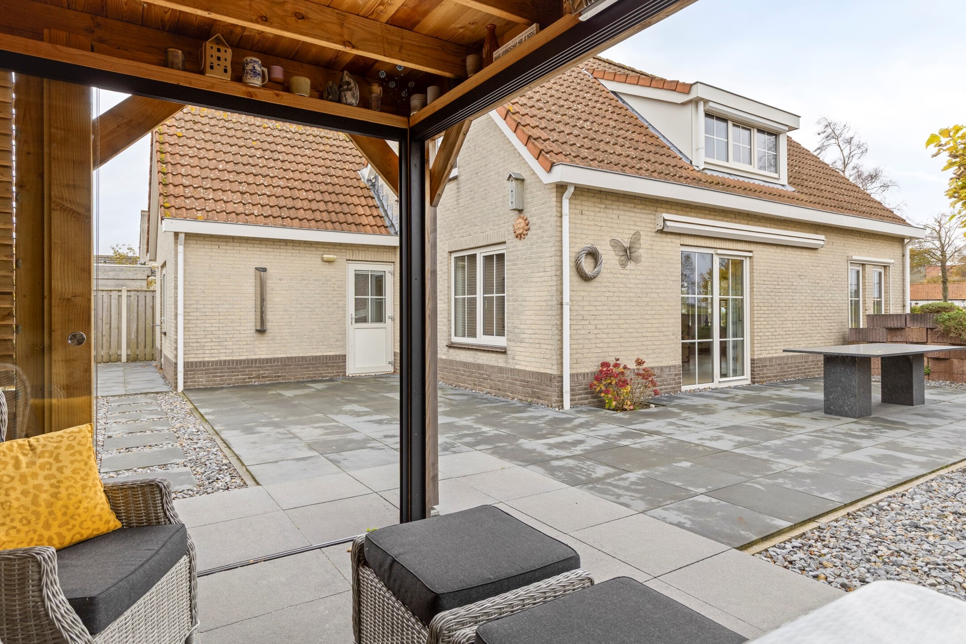De achtertuin is fraai en onderhoudsvriendelijk aangelegd met diverse vaste beplanting. Een echte blikvanger is de sfeervolle tuinkamer, waar u het hele jaar door heerlijk kunt zitten. Dankzij de glazen schuifdeuren kunt u hier zowel in de zomer als in de winter comfortabel genieten van het buitenleven.