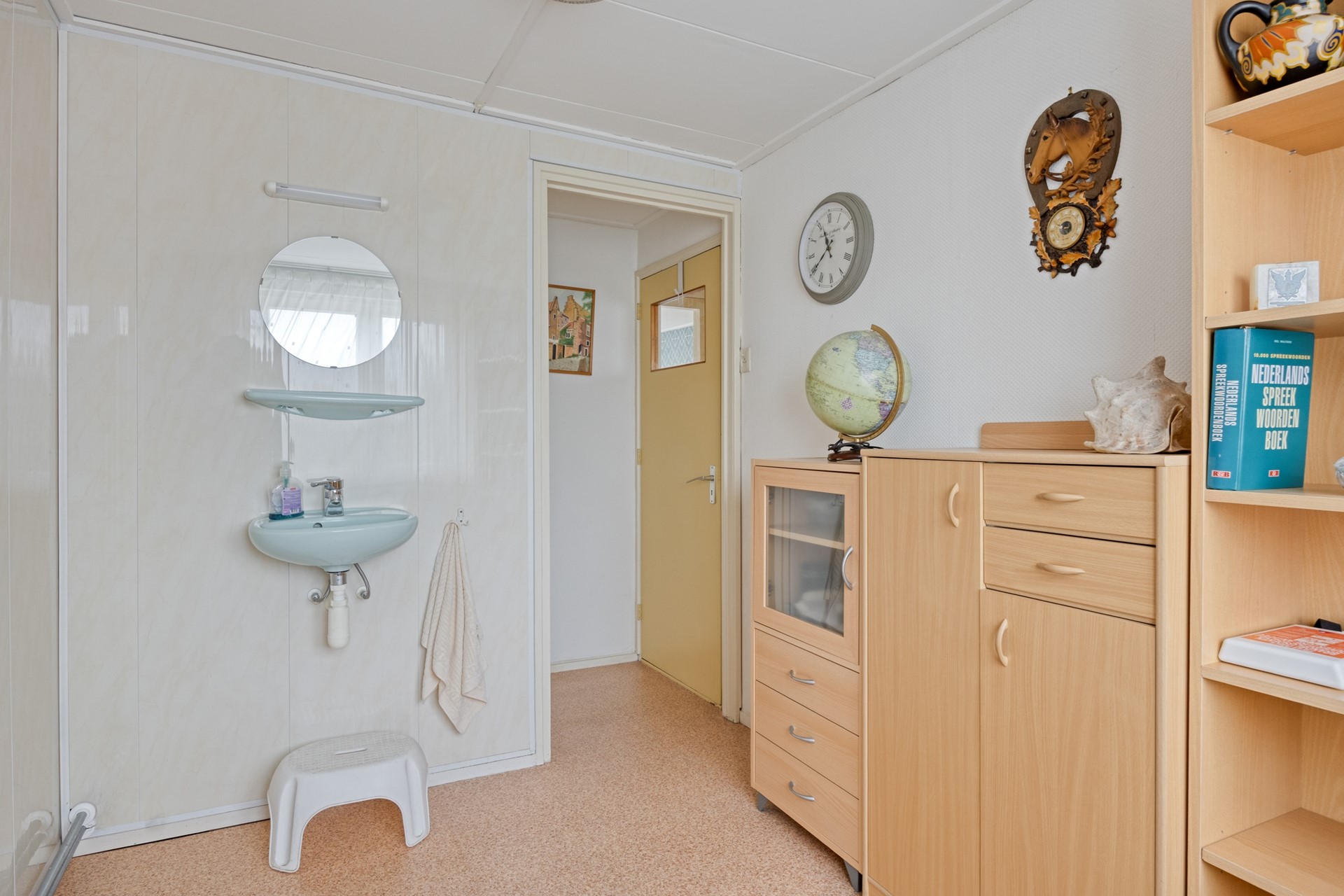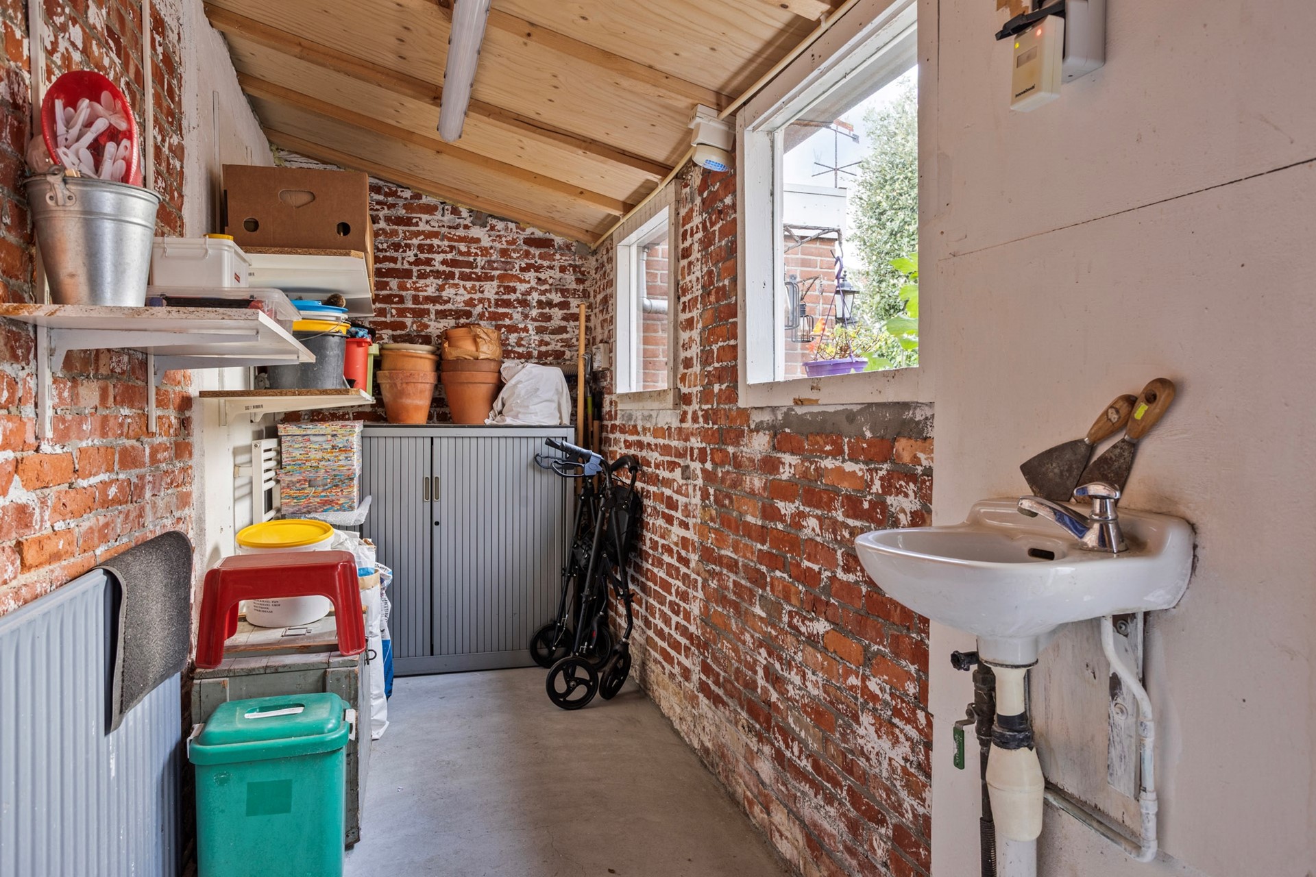 Achter de keuken vindt u de bijkeuken met aansluiting voor de wasmachine en droger, en de badkamer. De compacte badkamer beschikt over een douchehoek en een toilet. Vanuit de bijkeuken is toegang tot de tuin.