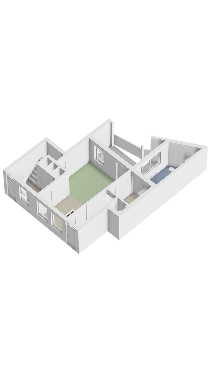 De begane grond biedt een compleet en sfeervol appartement met eigen entree. In de hal vindt u de meterkast. Dit appartement is ideaal als gastenverblijf, mantelzorgruimte of (gedeeltelijke) verhuur. De knusse woonkamer met slaapgedeelte voelt als een warm welkom. In het woon-/slaapgedeelte is een praktische trapkast aanwezig.