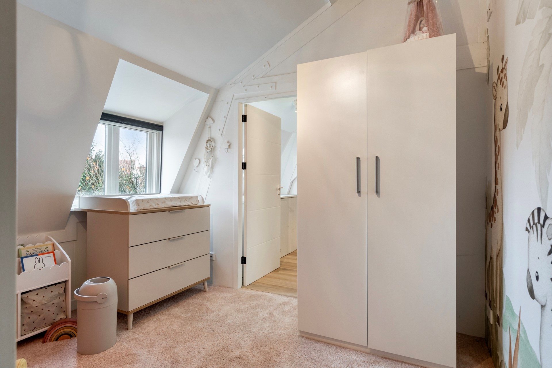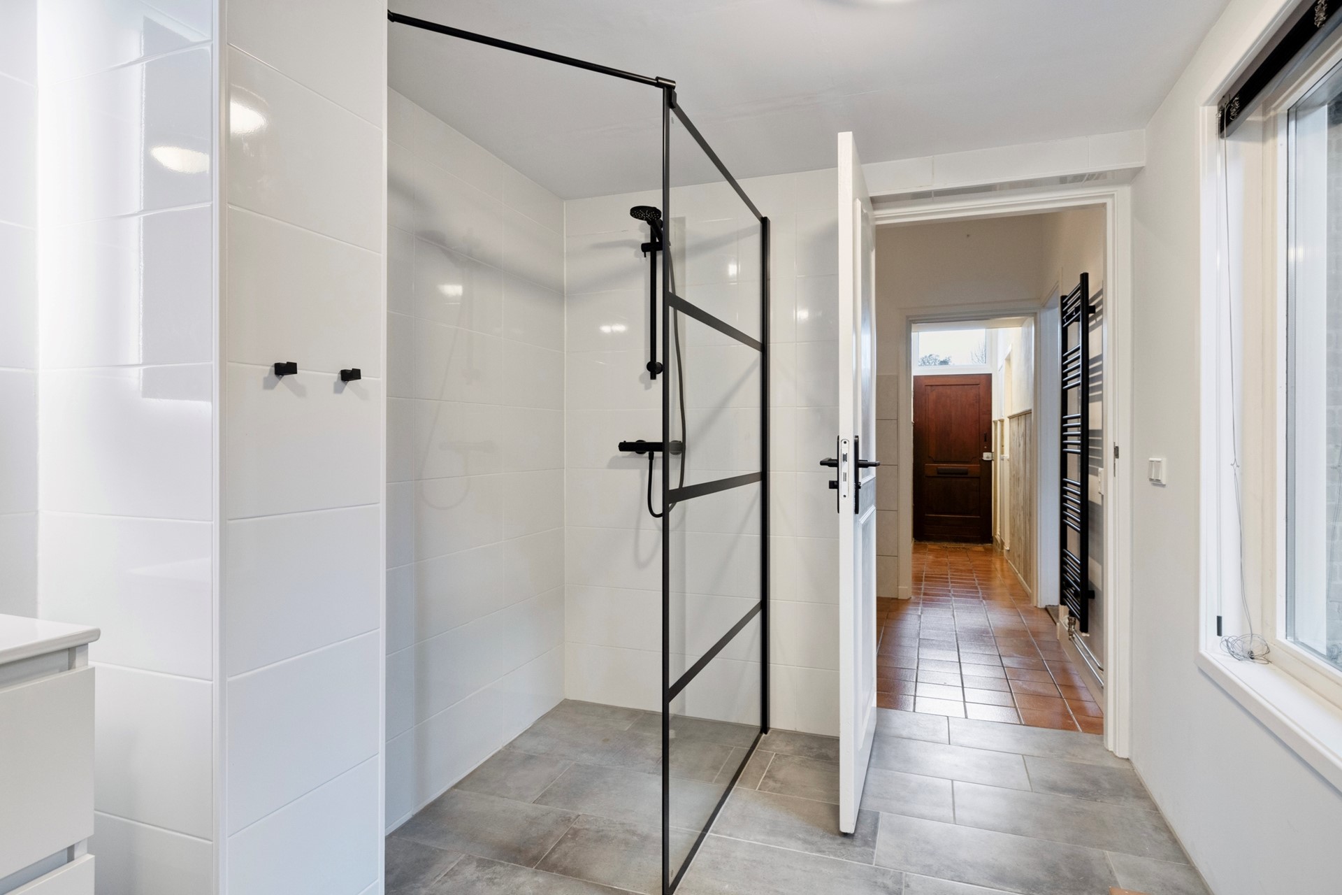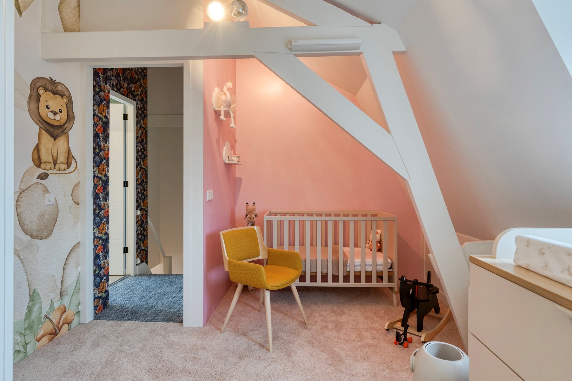 Op de tweede verdieping bevinden zich een overloop, een badkamer en twee grote slaapkamers. De zichtbare balken zorgen voor een sfeervol geheel en maken deze verdieping extra karaktervol. De grootste slaapkamer is voorzien van een inloopkast en biedt een riante slaapruimte van ca. 17,7 m². De moderne badkamer is verrassend ruim opgezet en keurig uitgevoerd met een inloopdouche, toilet en stijlvol dubbel wastafelmeubel. De gecombineerde vloer- en wandafwerking en de elektrische vloerverwarming zorgen voor extra comfort. Ook is er een wasmachine en drogeraansluiting aanwezig.