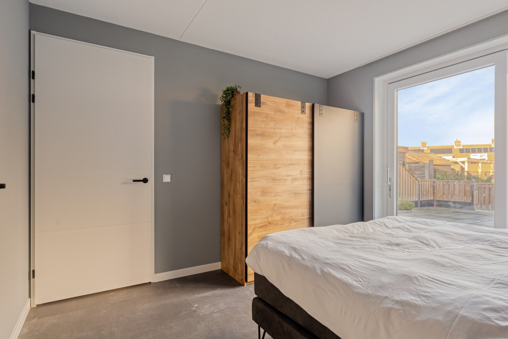 Aan de achterzijde van de woning bevindt zich een ruime slaapkamer met een oppervlakte van ca. 13 m2. Via schuifpui heb je hier een prachtig zicht op de tuin en directe toegang naar buiten.