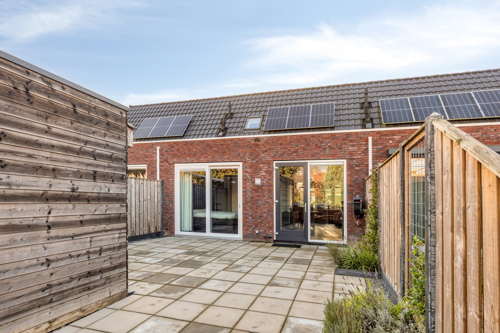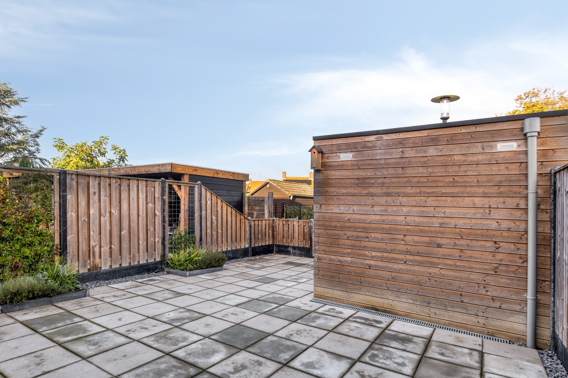 De woning beschikt over een onderhoudsvriendelijke tuin en is netjes aangelegd met bestrating en vaste beplanting. Achterin de tuin staat een vrijstaande houten berging met een oppervlakte van ca. 11,8 m2 en is ideaal voor het opbergen van fietsen, tuinspullen of gereedschap. De deur van de berging en de poort hebben bredere afmetingen dan standaard. Aan de gevel van de woning bevindt zich een buitenkraan, wat het onderhoud van de tuin eenvoudig maakt. Daarnaast biedt de achterzijde van de woning toegang tot openbare parkeerplekken, waardoor parkeren altijd gemakkelijk en dichtbij is.