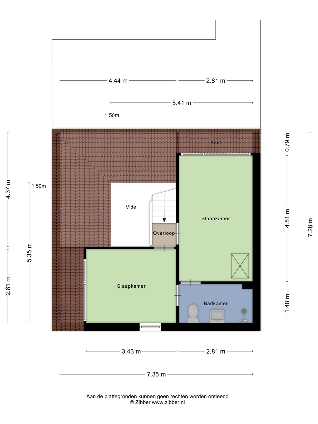 De vide geeft de overloop een open karakter. Hier bevinden zich twee slaapkamers met een oppervlakte van ca. 13,5 m² en 9,6 m². Beide slaapkamers zijn voorzien van een dakkapel. De badkamer heeft een oppervlakte van ca. 4 m2 en is uitgerust met een douche, toilet en wastafel.