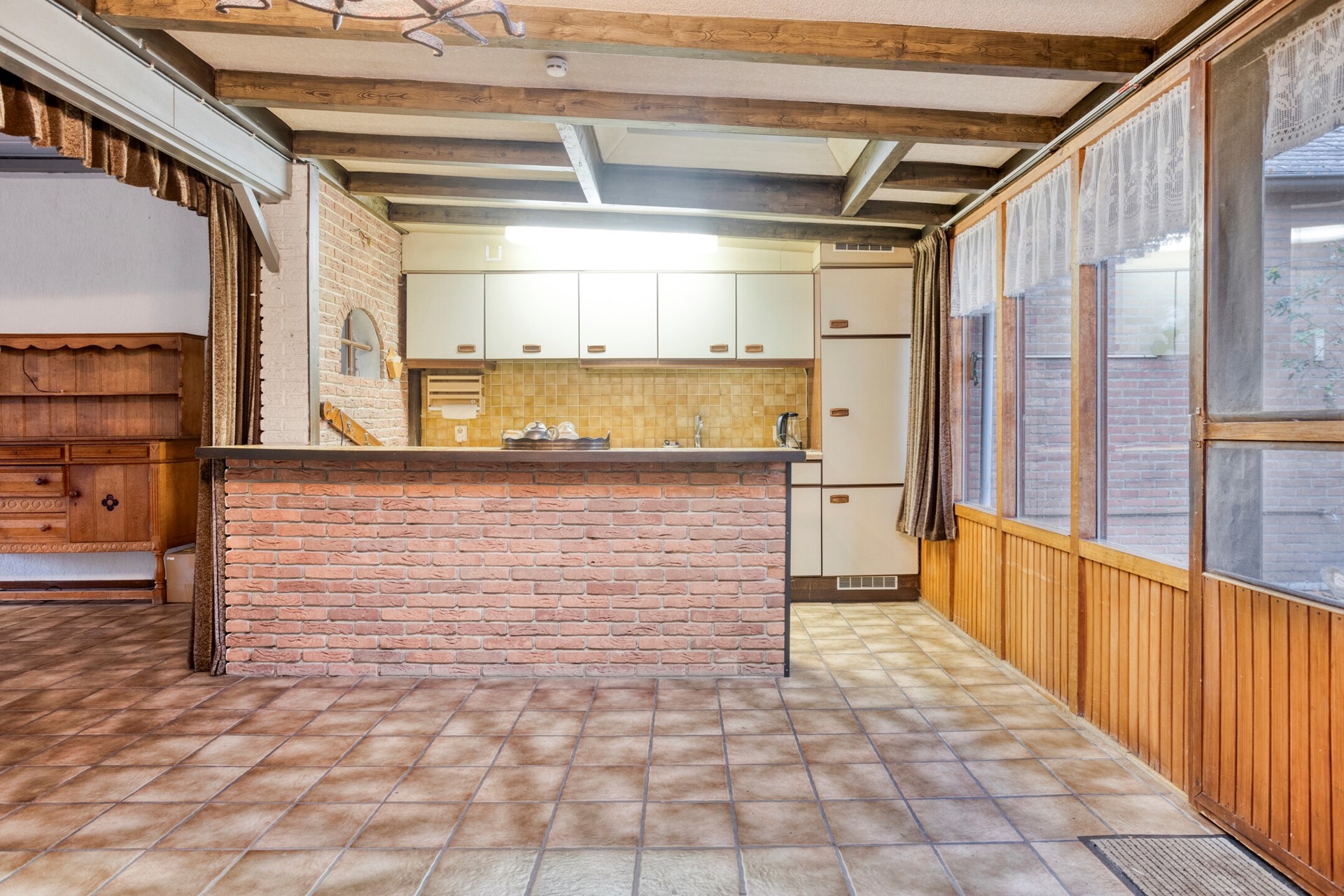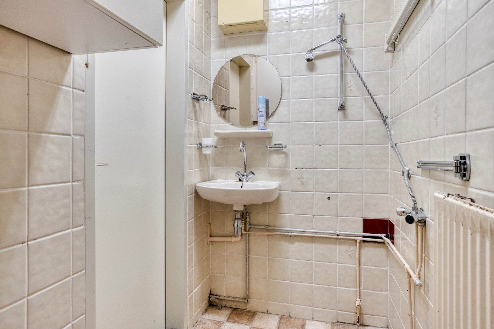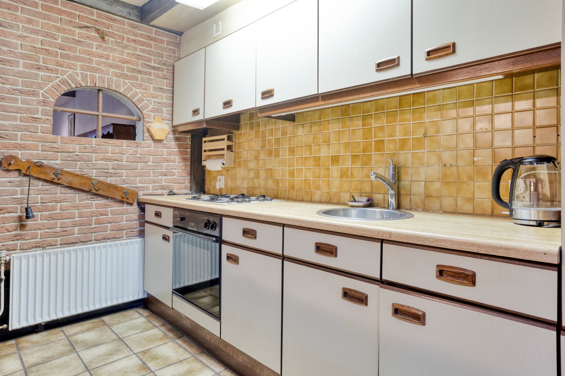 Aan de achterzijde is in aanbouw de keukenruimte gerealiseerd, die tevens toegang biedt tot de tuin. De keuken is deels uitgevoerd met inbouwapparatuur, waaronder een oven, koelkast en gaskookplaat. Daarnaast vind je op de begane grond een fijne slaapkamer van ca. 12 m² en een badkamer, voorzien van een douche, toilet en wastafel.